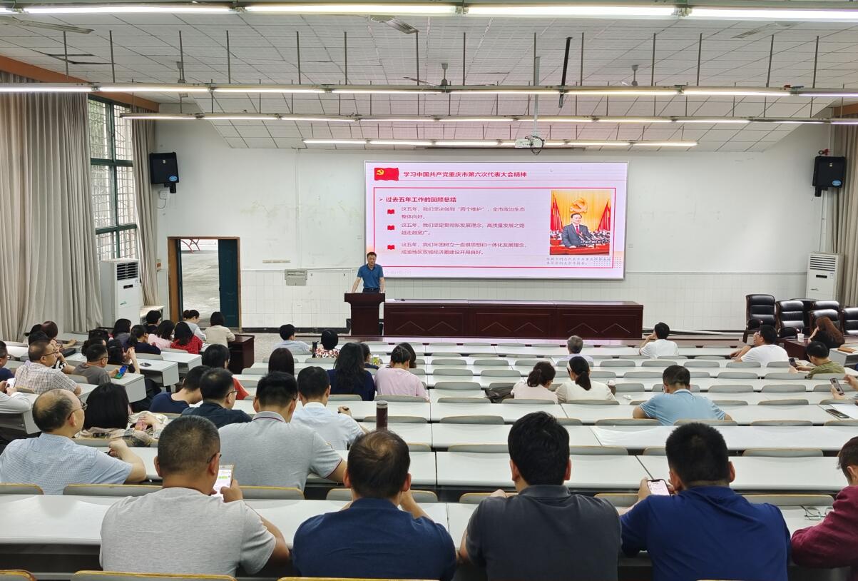 首先,李余廷书记带领大家学习了中国共产党重庆市第六次代表大会精神。他指出,中国共产党重庆市第六次代表大会,是在党的二十大即将召开,我市奋力推进社会主义现代化建设新征程关键时期召开的一次重要会议。全会聚焦把习近平总书记殷殷嘱托全面落实在重庆大地上这条主线,紧扣习近平总书记对重庆提出的营造良好政治生态,坚持“两点”定位、“两地”“两高”目标、发挥“三个作用”和推动成渝地区双城经济圈建设等重要指示要求,系统总结了过去五年重庆的发展成绩,深刻回答了今后五年建设什么样的重庆、怎样建设重庆的战略性问题,并提出了三项重大任务、六个方面目标,科学谋划了未来一个时期重庆高质量发展、高品质生活的美好蓝图。他强调,全会充分体现了以习近平同志为核心的党中央推动重庆新时代高质量发展、创造巴渝儿女高品质生活的时代主题,是重庆全面建设社会主义现代化新征程发出的动员令和冲锋号。接下来,海棠书屋 要把学习宣传贯彻重庆市第六次党代会精神作为当前和今后一个时期的重要政治任务,多层次、多角度抓好宣传宣讲,迅速将第六次党代会的精神实质传达到每一位师生,全力以赴推动市第六次党代会精神在海棠书屋 落地落实、见到实效,以实干实绩迎接党的二十大胜利召开。