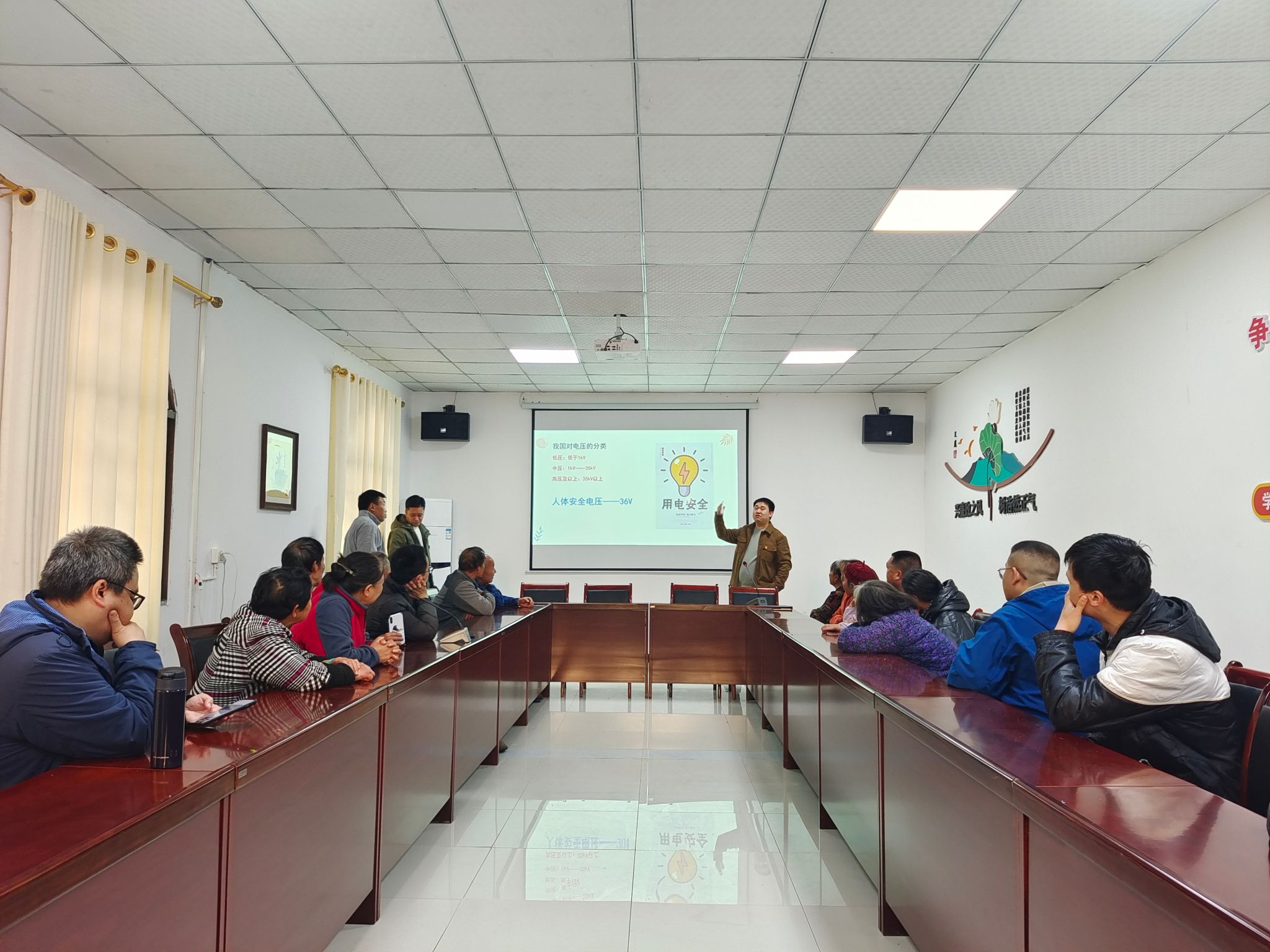 随后,在文风村委会活动室,围绕村民普遍关注的“冬日如何做到安全用电?”需求,海棠书屋 教师第四党支部党员许龙副教授和后勤保障部党委第三党支部熊巾深同志先后用生动活泼、贴近村民的语言,从生活中不规范的用电现象、触电与电气火灾的救援、雷电防护以及空开的复位、线路常用接法、灯头灯泡更换、常见故障处理方式等方面,进行了科普讲解和现场示范,并现场回应了村民们的疑问,赢得了参与村民的热烈称赞和一致好评。