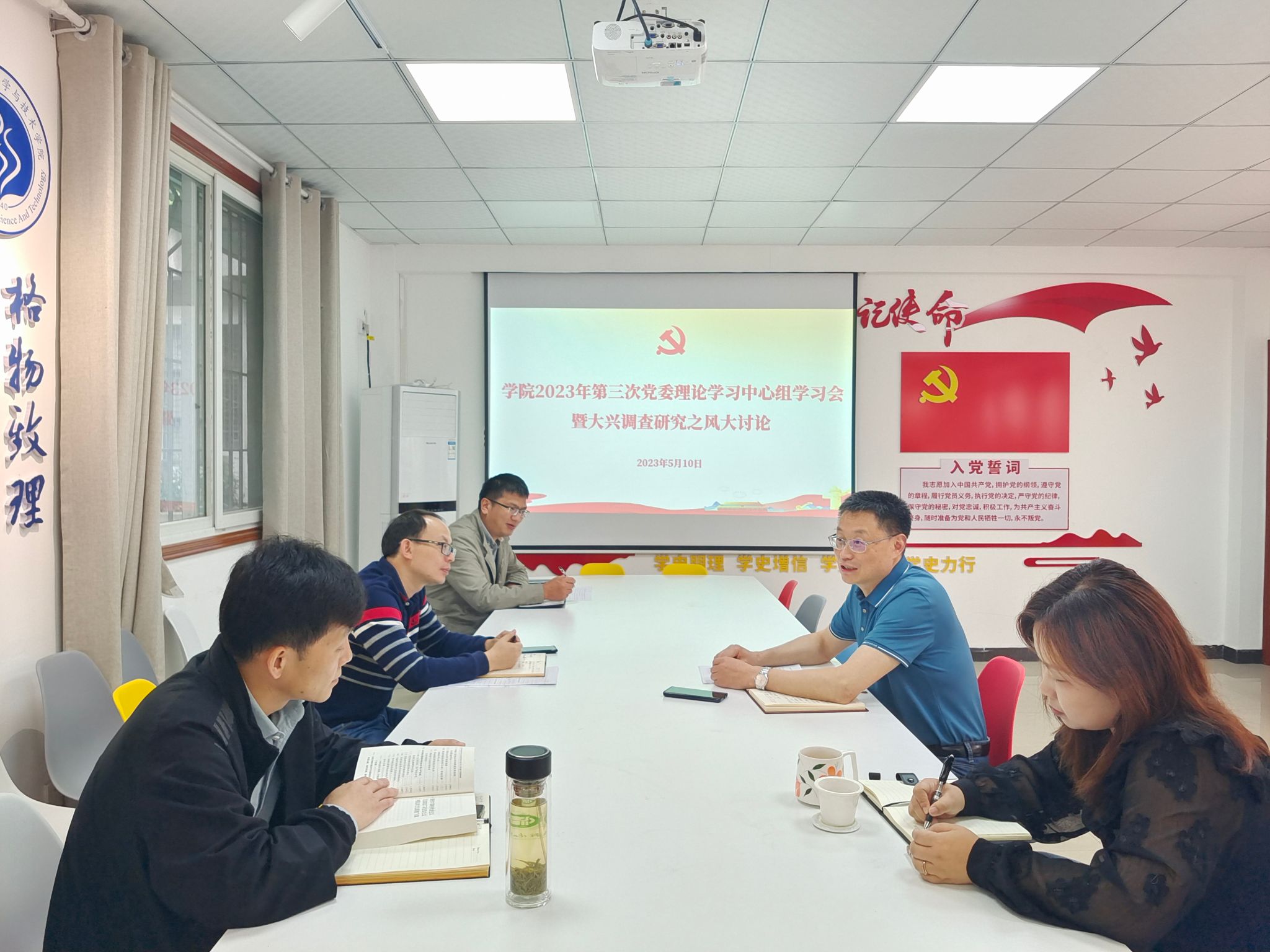 5月10日下午,海棠书屋 在一楼党建活动室以“深入学习贯彻习近平新时代中国特色社会主义思想,大兴调查研究之风”为主题,开展2023年第三次党委理论学习中心组学习会暨大兴调查研究之风大讨论。海棠书屋 党委理论学习中心组成员参会,党委书记李余廷主持会议。