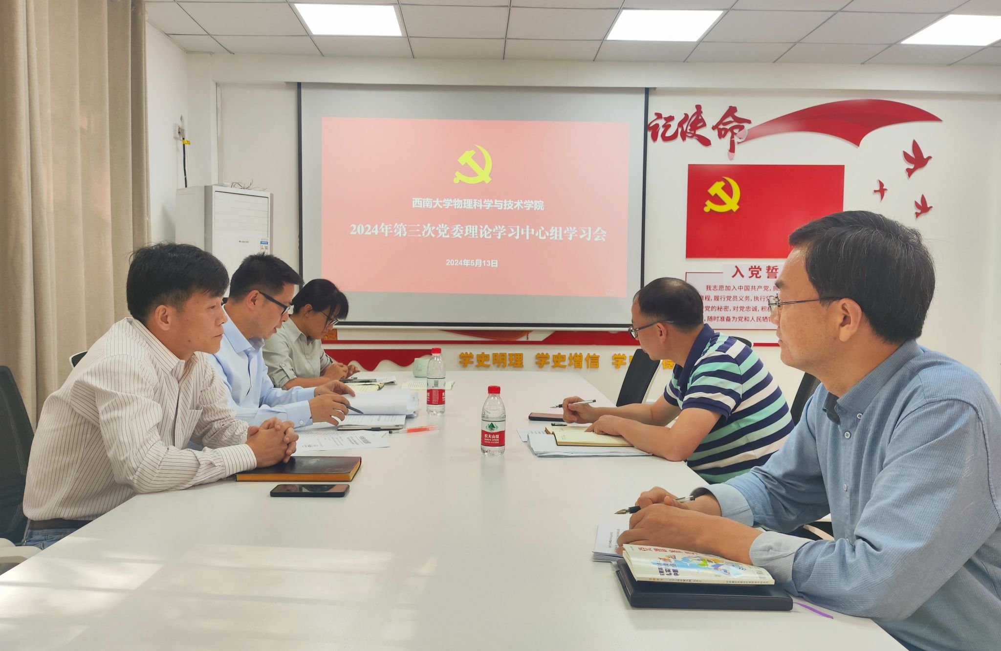 5月13日下午,海棠书屋 在一楼党建活动室开展2024年第三次党委理论学习中心组学习会,专题学习研讨习近平总书记视察重庆重要讲话重要指示精神和《中国共产党纪律处分条例》。海棠书屋 党委理论学习中心组成员参会,党委书记舒刚主持会议。