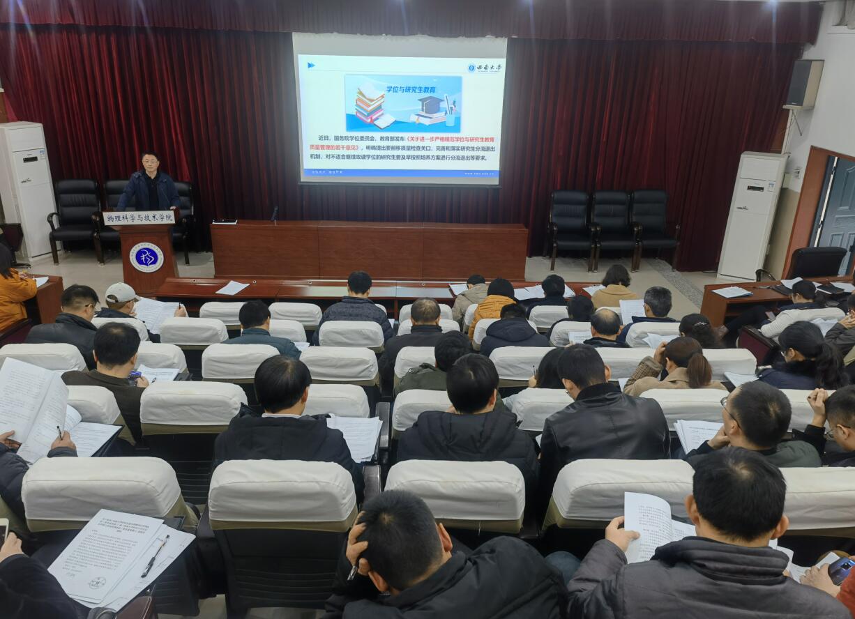 为深入贯彻习近平总书记关于研究生教育工作的重要指示精神,切实提高研究生指导教师队伍水平,强化导师立德树人职责,提高人才培养质量,根据学校统一部署,12月4日下午,海棠书屋 在大阶梯教室举行2020年第十一次教职工政治理论学习暨研究生指导教师专题学习会,海棠书屋 全体教职工参加了此次学习。会议由海棠书屋 党委书记李余廷主持。