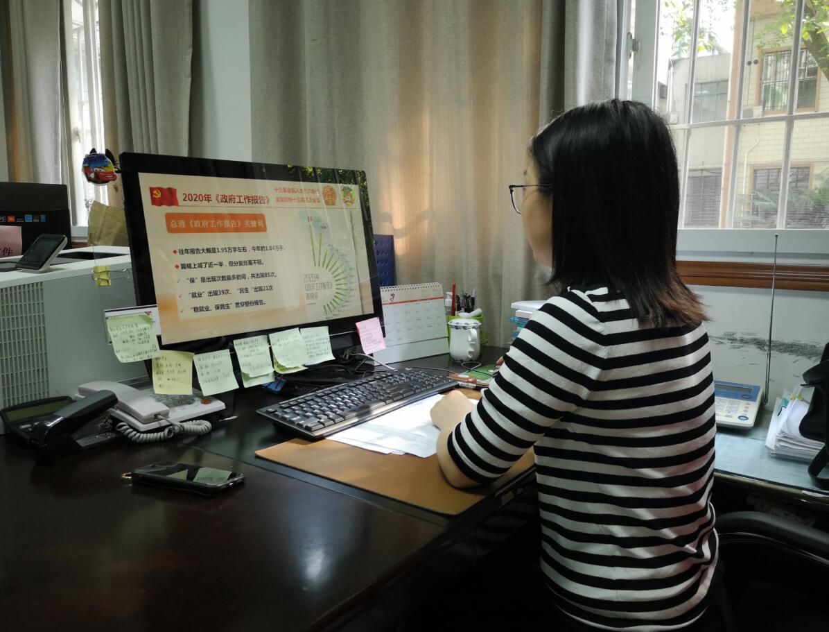 党委围绕习近平总书记今年两会上的5天日程安排和四下组团时发表的重要讲话等内容,为全体教职工精心制作了《习近平总书记在全国两会期间的重要讲话和全国两会精神》PPT,搜集了“习近平今年两会上的新语新论”“习近平回信勉励全国广大科技工作者”等微视频和“2020全国两会政府工作报告主要内容”“在第73届世界卫生大会视频会议开幕式上的致辞”等学习文稿资料,并提前通过QQ群、邮箱和点对点传送等方式提醒和发送给全体教职工。
