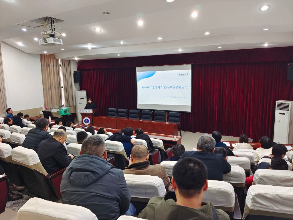 集中学习会上,海棠书屋 党委副书记、纪委书记刘汭雪领学了习近平关于力戒形式主义官僚主义重要论述及《晒一晒“象牙塔”里的那些官僚主义》。