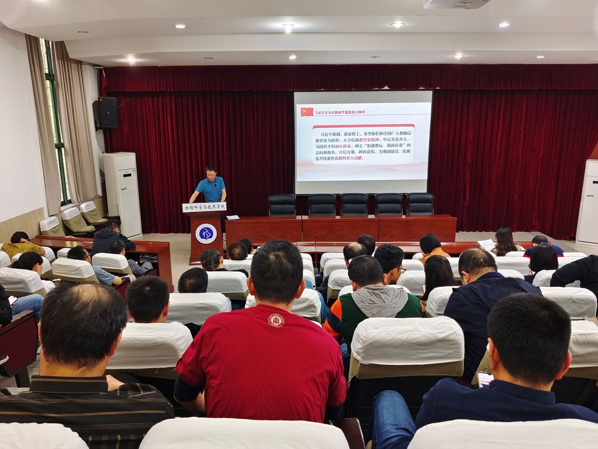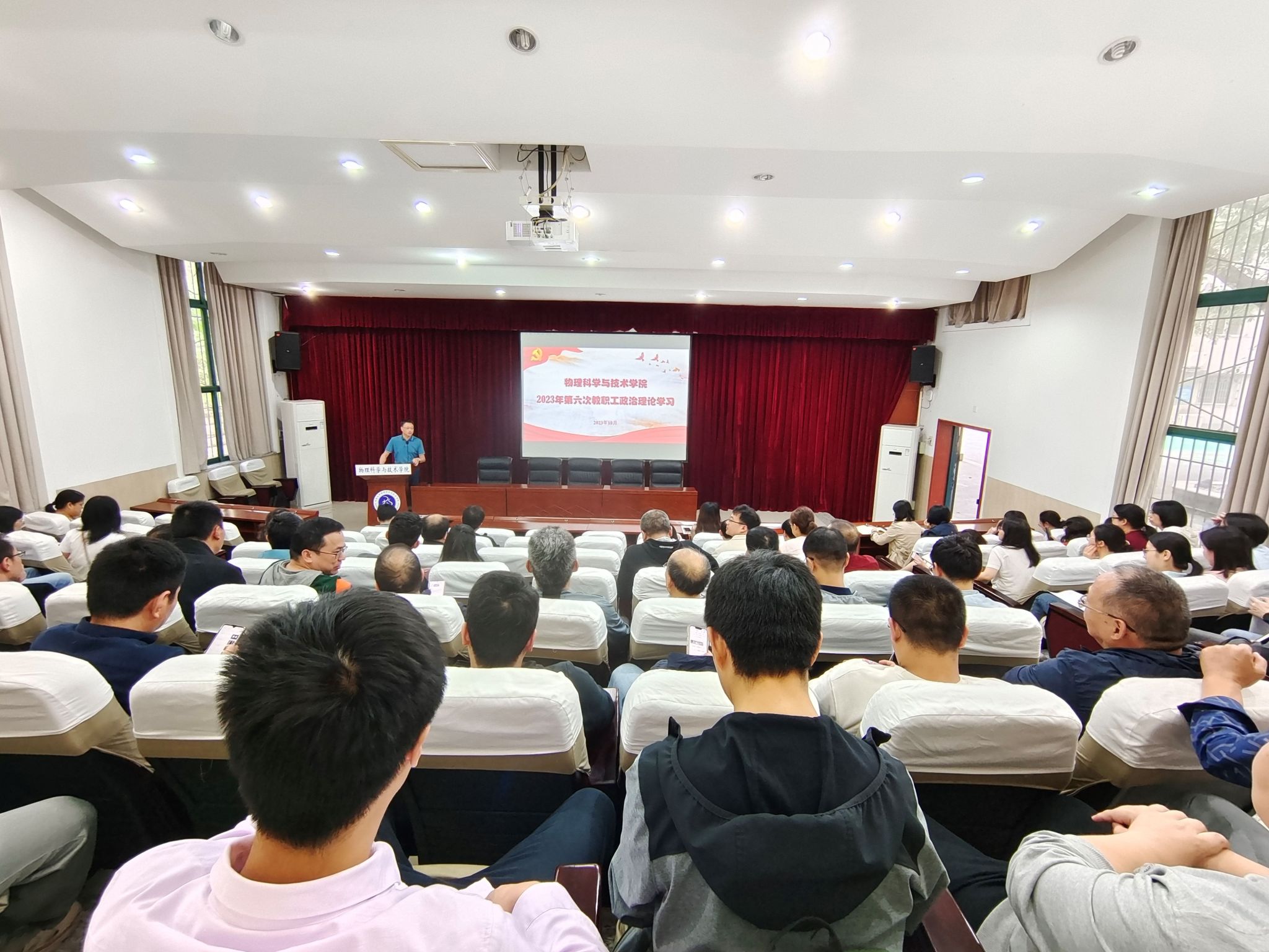 10月8日下午,海棠书屋 在大阶梯教室举行2023年第六次教职工政治理论学习会,专题学习习近平总书记关于意识形态工作的重要论述、习近平总书记教师节重要指示精神和集中观看“西大教师故事”短视频等内容。学习会由海棠书屋 党委书记李余廷主持,全体教职工参加了此次学习。