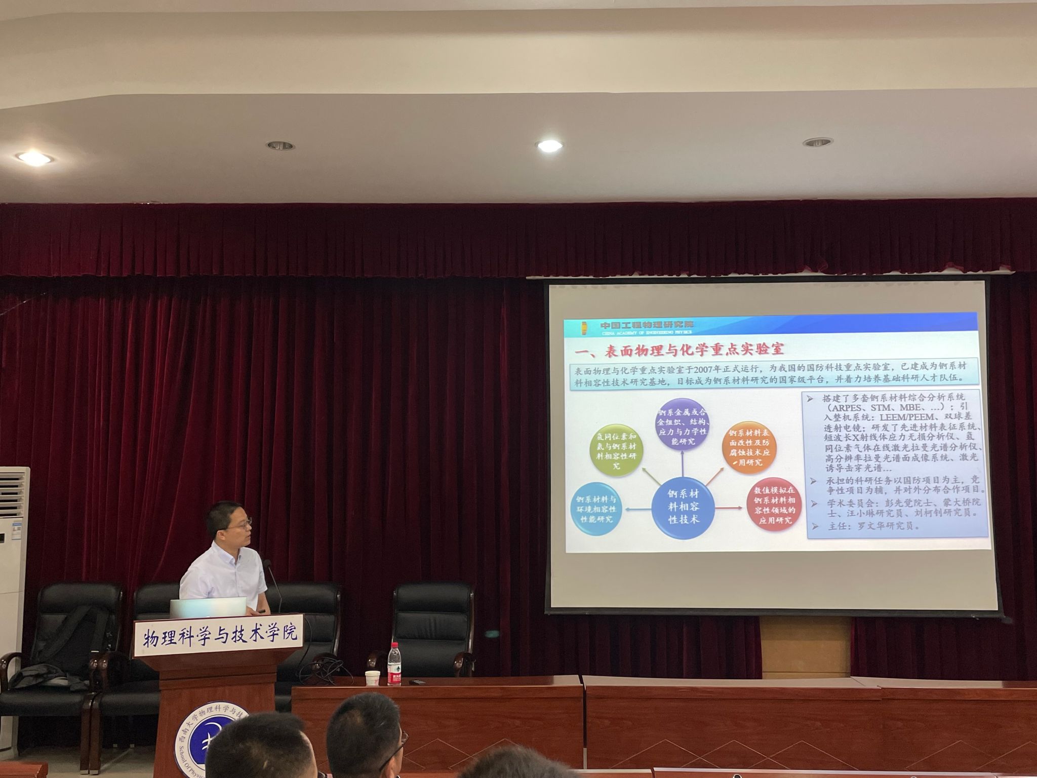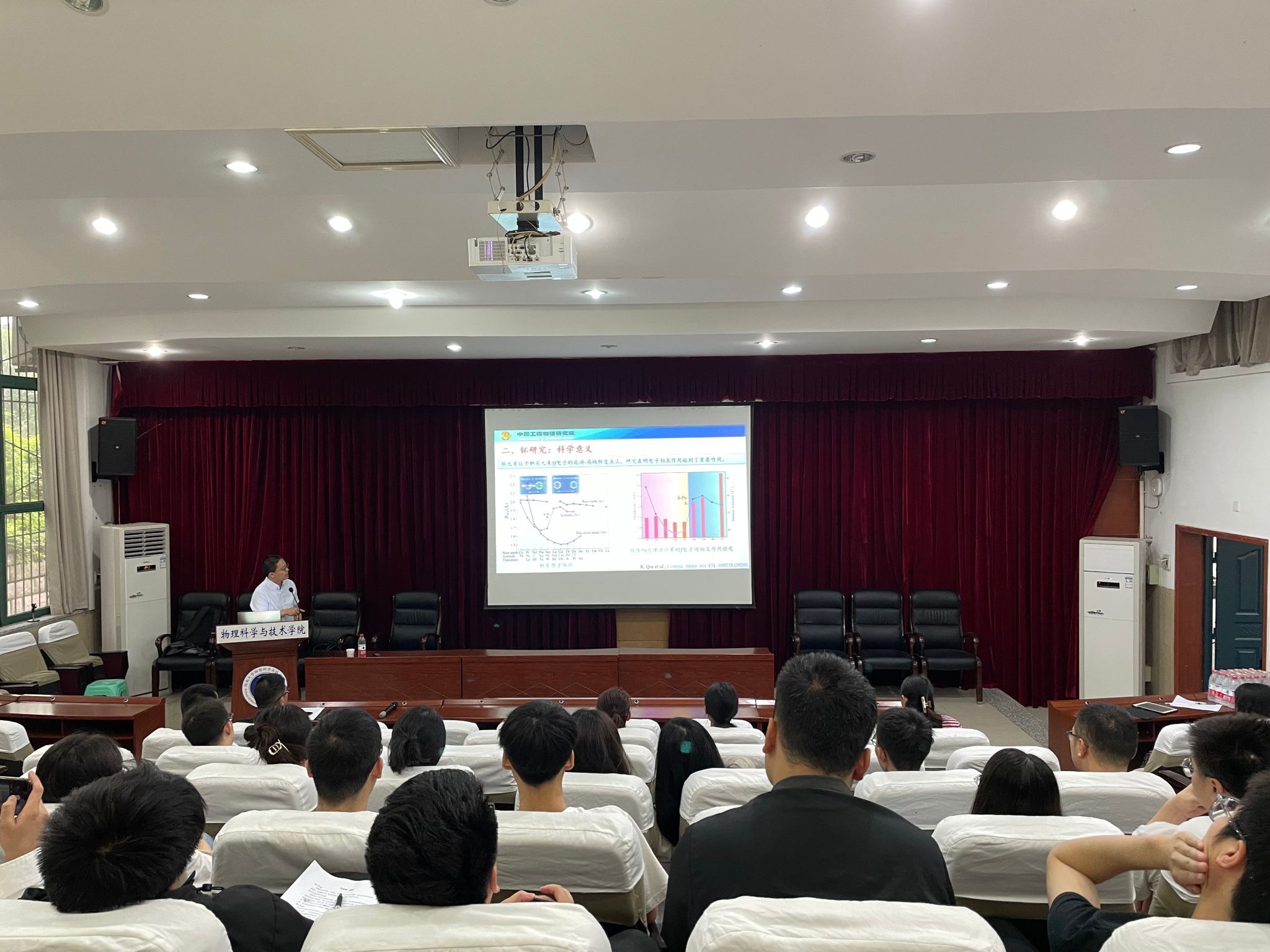 2023年5月26日上午,中国工程物理研究院材料研究所邱睿智副研究员应邀来海棠书屋 进行学术交流,为大家带来一场题为“碳氧化钚热力学稳定性的机器学习研究”的精彩报告。本次报告会由桑文龙教授主持,海棠书屋 40余名师生聆听了此次报告。