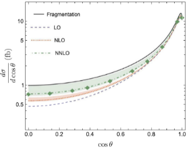 一个重要的理论问题是:对该过程的更高阶微扰修正是否重要?QCD微扰展开收敛性如何?桑文龙老师及合作者首次计算了此过程的次次领头阶辐射修正(即两圈QCD修正)。通过对红外发散的分析,他们验证了NRQCD因子化定理在双圈水平以一种相当非平庸的方式成立。另外,研究表明,两圈修正为负且比单圈修正还要重要,考虑次次领头阶修正后得到了非物理的负截面预言。这预示着传统的NRQCD方法对此过程失去了预言能力。