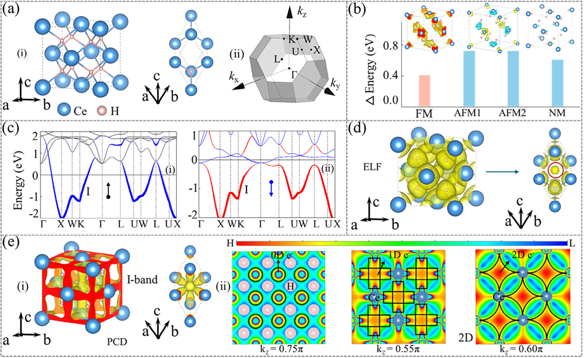 通过第一性原理计算发现,该家族材料具有多样化磁有序:2种铁磁(FM)、7种反铁磁(AFM)和3种非磁(NM)构型。以CeH2为代表,自旋轨道耦合诱导的时间反演对称性破缺产生巨大贝里曲率,导致异常霍尔电导率峰值达939 939 Scm-1,通过电子掺杂可进一步调控至费米能级,为开发高灵敏度磁传感器奠定基础。另外,材料表面展现的超低功函数特性(最低2.61 eV)使其具备优异电子发射能力。在外电场调控下,3D间隙电子可迁移至表面形成准二维电子气,开关比达0.9 eVÅ -1,有望实现新型电控电子源器件。此外,TbH2表面对氮气分子的活化能垒低至2.1 eV,可显著促进氨合成反应,为设计高效催化剂提供新思路。
