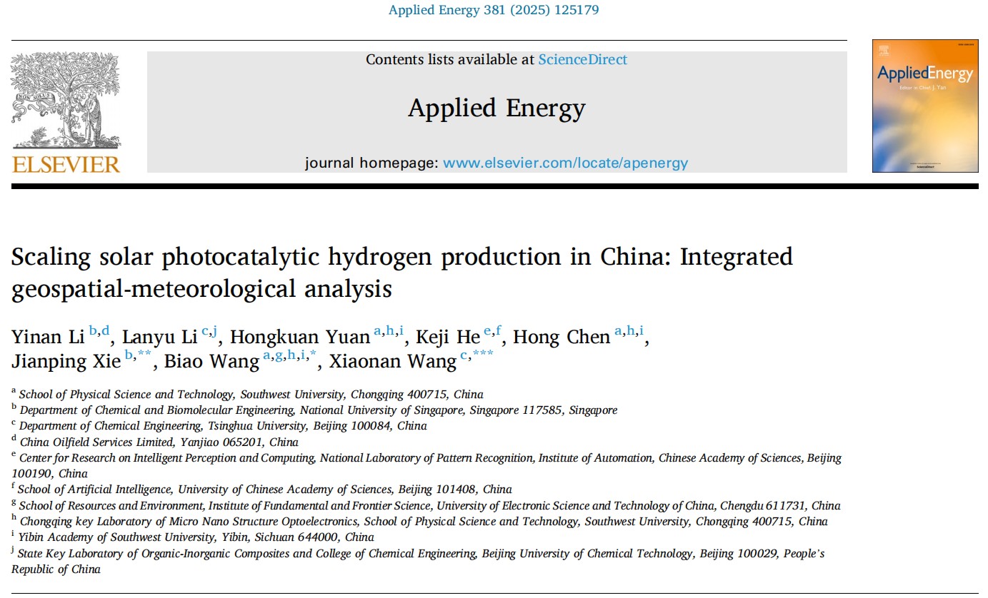 近日,海棠书屋 计算物理团队袁宏宽教授,王彪副教授携手清华大学王笑楠、新加坡国立大学谢建平教授研究团队,原创性地提出了一种基于气象大数据的机器学习模型,并深度融合全国空间-地理大数据,剖析了中国各地的制氢潜能以及下游产业链布局的合理性。这一突破性的研究成果已在国际能源交叉学科权威期刊《Applied Energy》(影响因子10.1,中科院一区TOP期刊)上发表,题为 “Scaling solar photocatalytic hydrogen production in China: Integrated geospatial-meteorological analysis”。海棠书屋 为该论文第一完成单位,王彪老师为通讯作者。