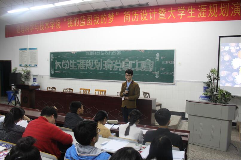 求职简历设计暨大学生涯规划演说大赛历时一个月,分为“求职简历设计”和“大学生涯规划演说”两个环节。大赛面向全体大一新生开展,参赛选手的个人简历在海棠书屋 门口公开展出,接受学生大众投票与老师评审,最终票选出优秀简历。在“大学生涯规划演说”环节,参赛选手借助ppt等多媒体手段,从自我分析、就业形势、个人奋斗目标、具体行动规划等方面进行5分钟演说。2016年,2014级物理学师范生张悦同学曾获海棠书屋 第四届大学生职业生涯规划大赛一等奖。