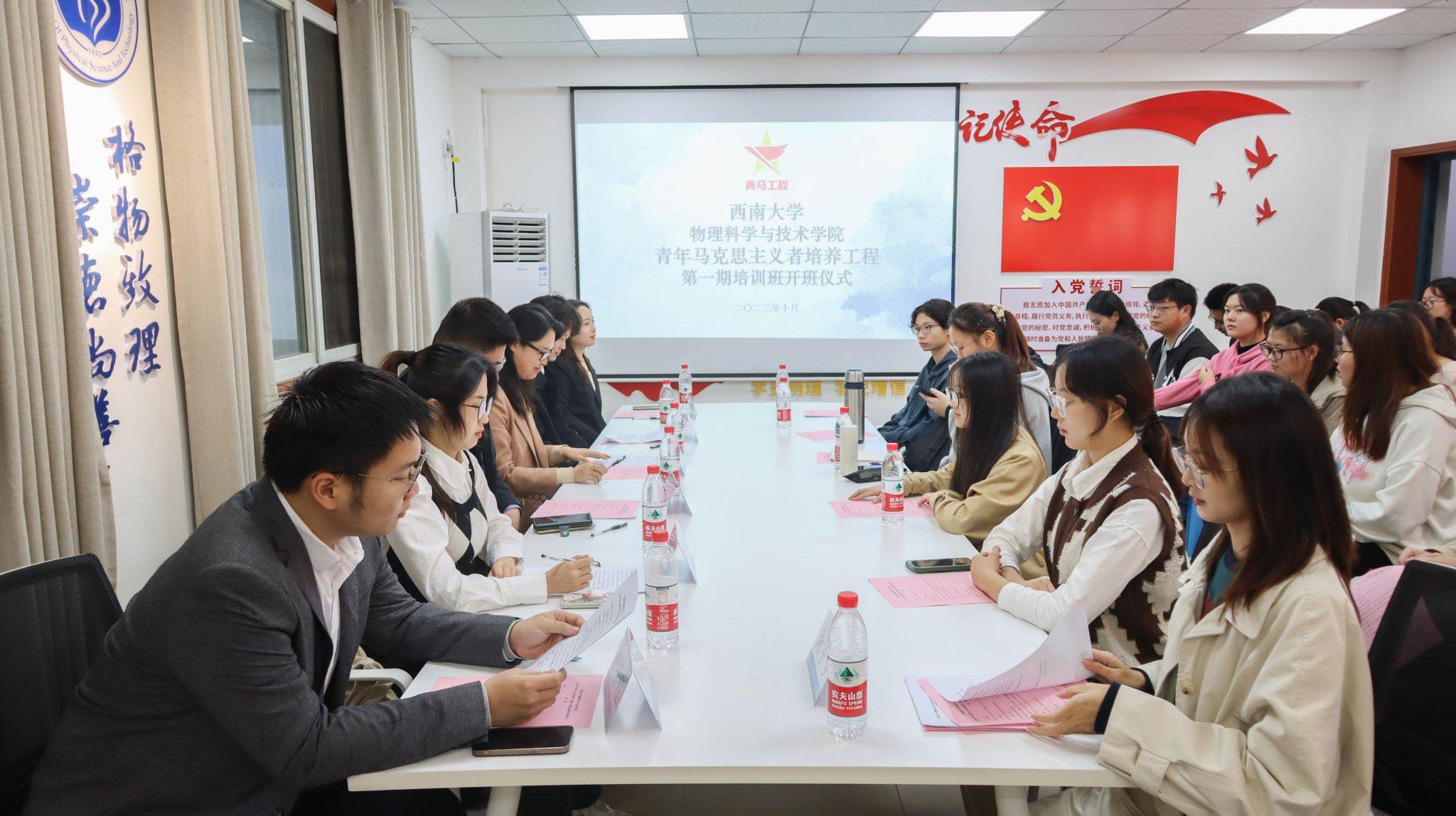 10月27日,海棠书屋 青年马克思主义者培养工程第一期培训班开班仪式暨读书会在海棠书屋 党员活动室顺利举行。院团委书记贺颖,校团委兼职团干、新闻传媒海棠书屋 研究生杨辉,海棠书屋 第十七届主席团成员王云韬以及第十八届主席团全体成员及院级“青马工程”培训班全体学员参加开班仪式,海棠书屋 第十八届主席团成员卢子程担任主持人。