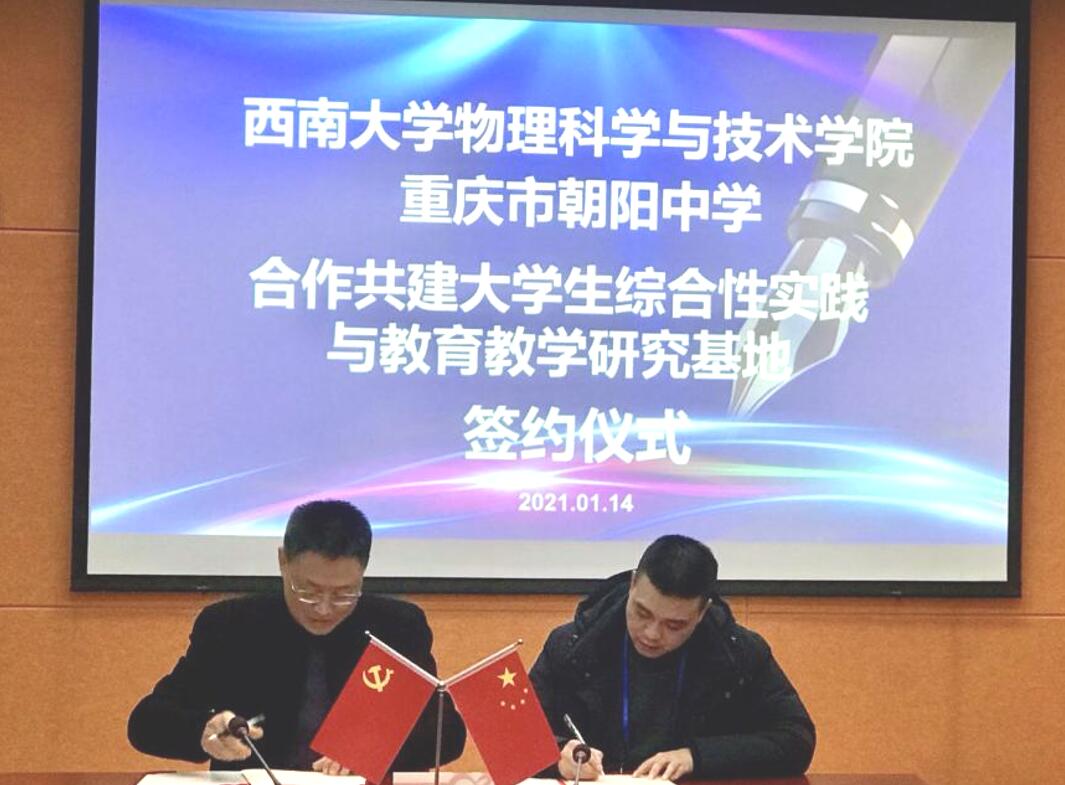 为进一步深化高校与高中优势互补、资源共享,健全立德树人落实机制,提升高校与高中教育实践的时代性、实效性,1月14日下午,海棠书屋 与重庆市朝阳中学举行了“大学生实践教育暨教育教学研究基地”签约仪式及交流座谈。党委副书记刘汭雪、海棠书屋 副院长邓涛、创新创业中心主任谭兴文、正高实验师陈晓莉,以及朝阳中学副校长陈伏兰、教导处主任黄坤林等参加会议,会议由朝阳中学王光毅副校长主持。