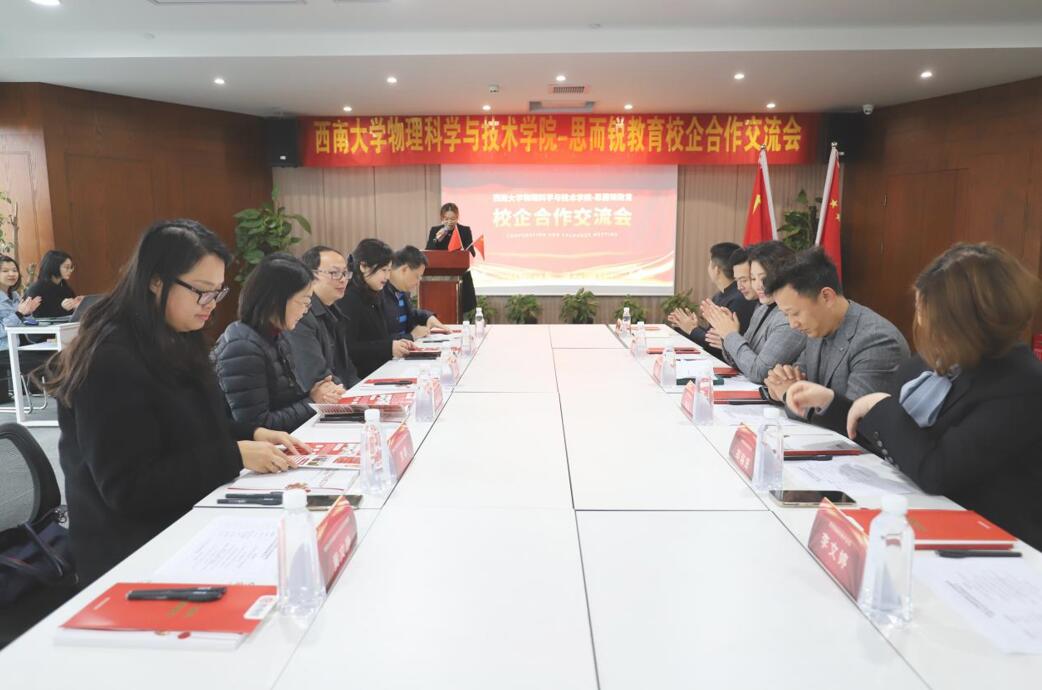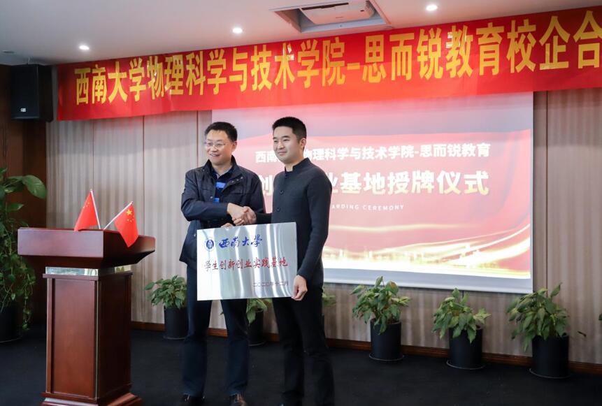 为深入推进校企合作、产教融合,进一步提升基础物理教育人才培养质量,3月10日,海棠书屋 与思而锐教育举行了“学生创新创业实践基地”授牌仪式及合作交流座谈会。党委书记李余廷、党委副书记刘汭雪、海棠书屋 副院长邓涛、教务办主任刘平萍、团委书记贺颖,以及思而锐教育罗春红总经理、夏丽副总经理等公司高层参加会议,会议由思而锐教育李文婷总监主持。