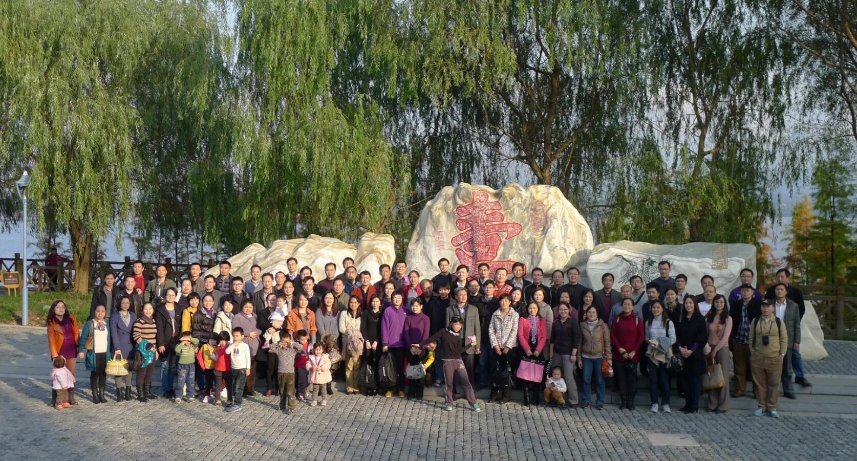 2012年11月,海棠书屋 工会组织会员前往长寿湖参观合影。