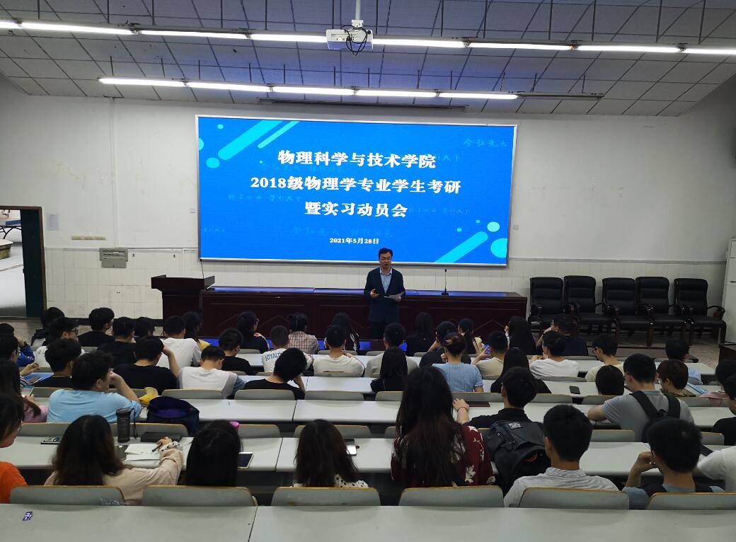 在大阶梯教室举行2018级物理学专业学生考研暨实习动员会。海棠书屋