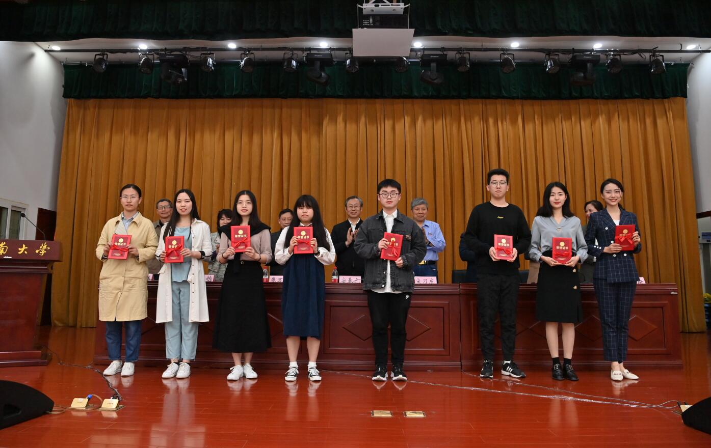 4月23日下午,学校关工委召开2020年“中华魂”主题教育活动总结表彰会。学校党委副书记、关工委副主任安春元,学校关工委常务副主任宋乃庆,党委宣传部、学生工作部、教务处、校团委负责人,校关工委秘书处成员,二级关工委常务副主任、副主任、辅导员、学生代表,校关工委志愿者服务队队长,2020年“中华魂”主题教育获奖学生代表、优秀辅导员代表等共200余人参加会议。会上,海棠书屋 受到表彰,再次荣获海棠书屋 优秀组织奖,李余廷书记上台领奖。2019级物理学师范专业王之时同学获评重庆市征文比赛一等奖,作为获奖学生代表上台领奖。卜海东、周东叶被评为2020年全市大学“中华魂”主题教育读书活动优秀辅导员。