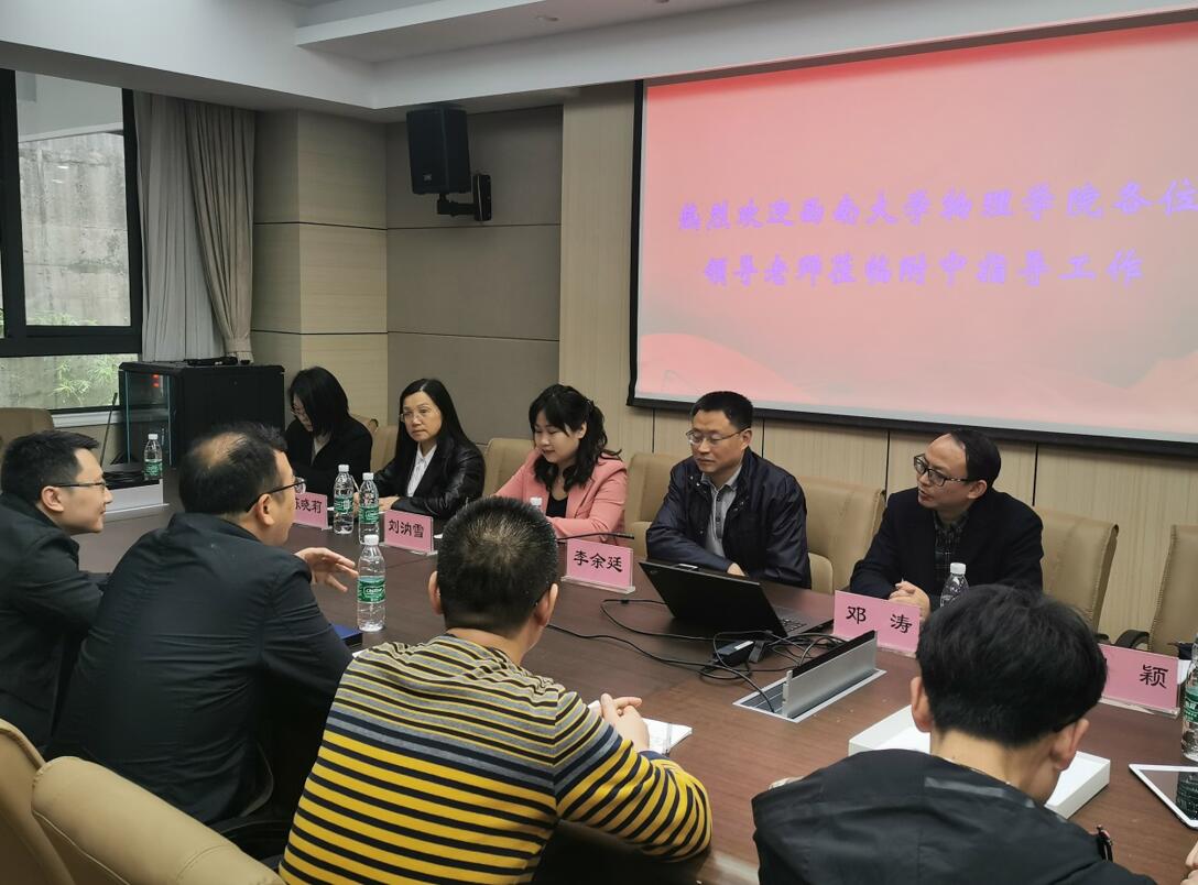 为进一步了解用人单位人才需求,加强与用人单位的合作及校友的联系,做好海棠书屋 学生培养及毕业生就业工作,3月17日上午,海棠书屋 与海棠书屋 附属中学开展了交流座谈会。党委书记李余廷、党委副书记刘汭雪、海棠书屋 副院长邓涛、教务办主任刘平萍、团委书记贺颖、教师代表陈晓莉,以及西大附中副校长黄仕友、教学指导中心副主任梁雷、高中物理教研组组长李正吉、初中物理教研组组长杨峻一、部分在西大附中工作的海棠书屋 毕业生代表参加了会议,会议由西大附中物理教研组李正吉组长主持。