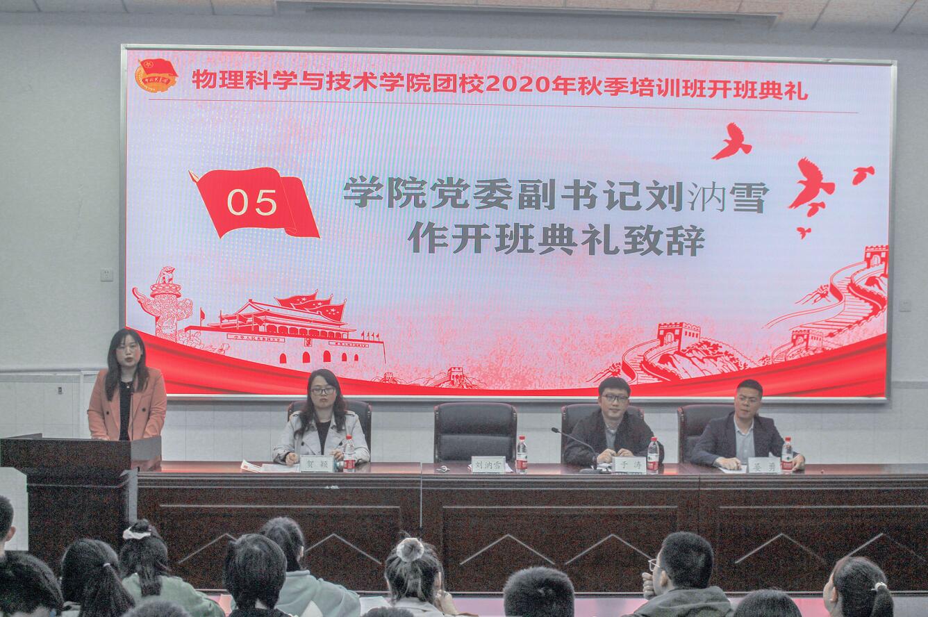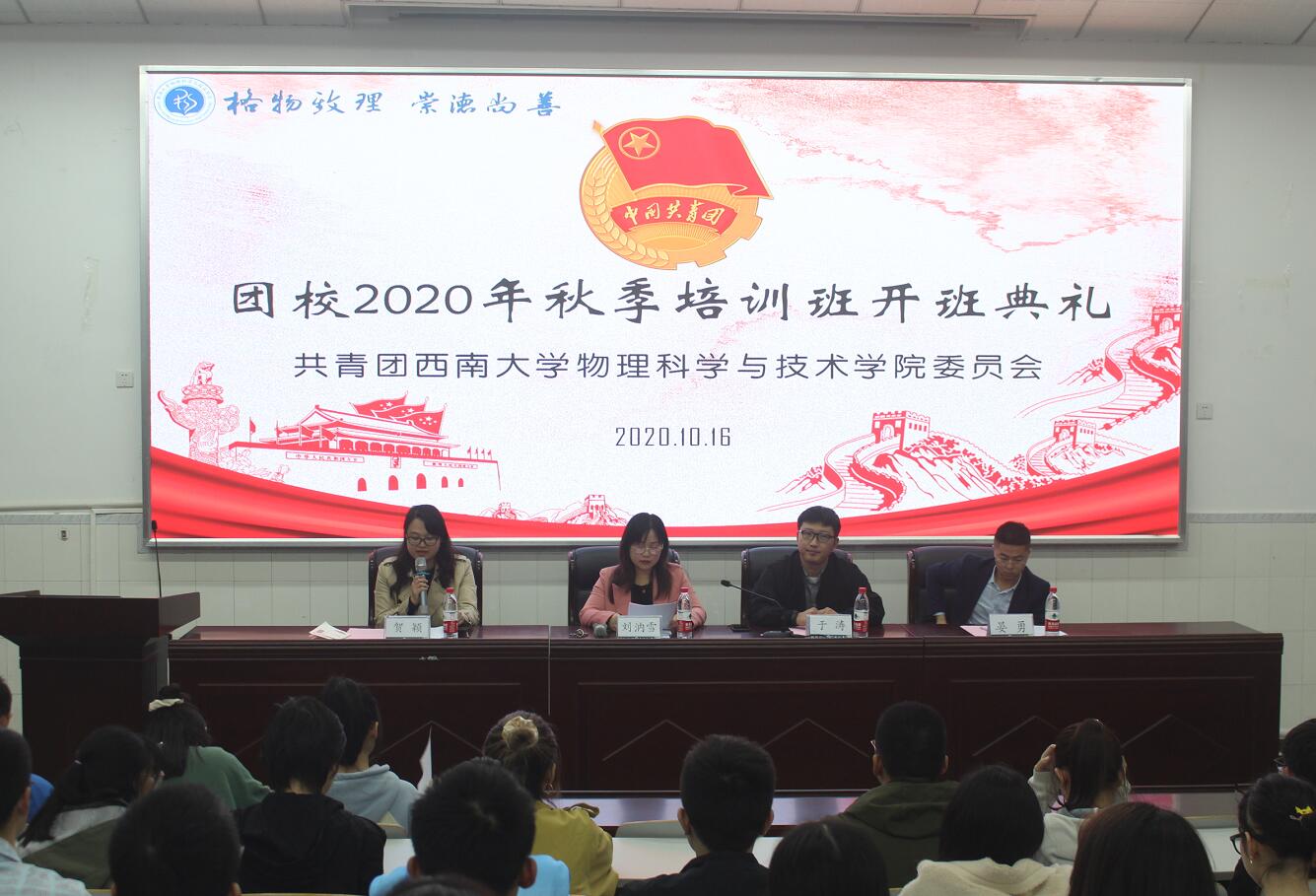 10月16日晚七点,团校开班典礼在物理大楼大阶梯教室举行。典礼由海棠书屋 团委书记贺颖主持,校团委副书记于涛应邀出席,海棠书屋 党委副书记刘汭雪、2020级辅导员晏勇参加了开班典礼。海棠书屋 团委学生会、科普创作社以及来自2019级、2020级各个团支部共计140名学员参会。