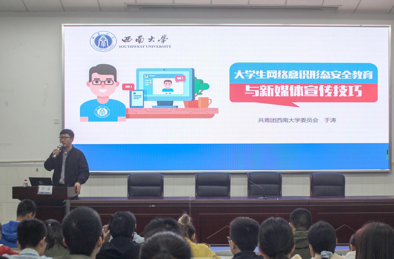 开班仪式结束后,于涛副书记以“大学生网络意识形态安全教育与新媒体宣传技巧”为题展开了团校第一讲。他以如何设计条理清晰的A4简历开讲,建议大家在大学期间抓住机遇,全方位锻炼自己。紧接着,他利用三段趣味对话引发了大家对于“新媒体的力量”的思考,强调了海棠书屋 学生会在新媒体工作上应该“培育宣传队伍,筑牢工作阵地;强化内容供给,吸引青年关注;清新网络空间,营造和谐校园氛围”。最后,他呼吁大家增强责任感、仪式感、自豪感,警惕西方意识形态与思想文化入侵,利用新媒体传播中华民族优秀传统文化、革命文化。