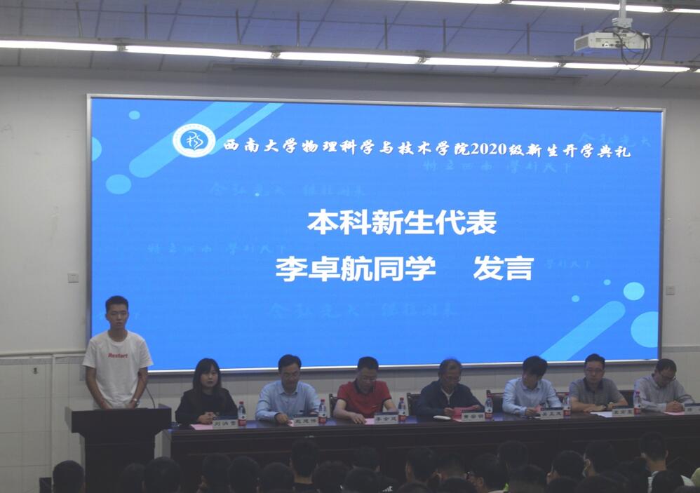 最后,2020级物理学公费师范1班李卓航作为新生代表发言,他表示:会秉承海棠书屋 院训,以自信进取的青春姿态,努力成长为可堪大用的新时代物理人。