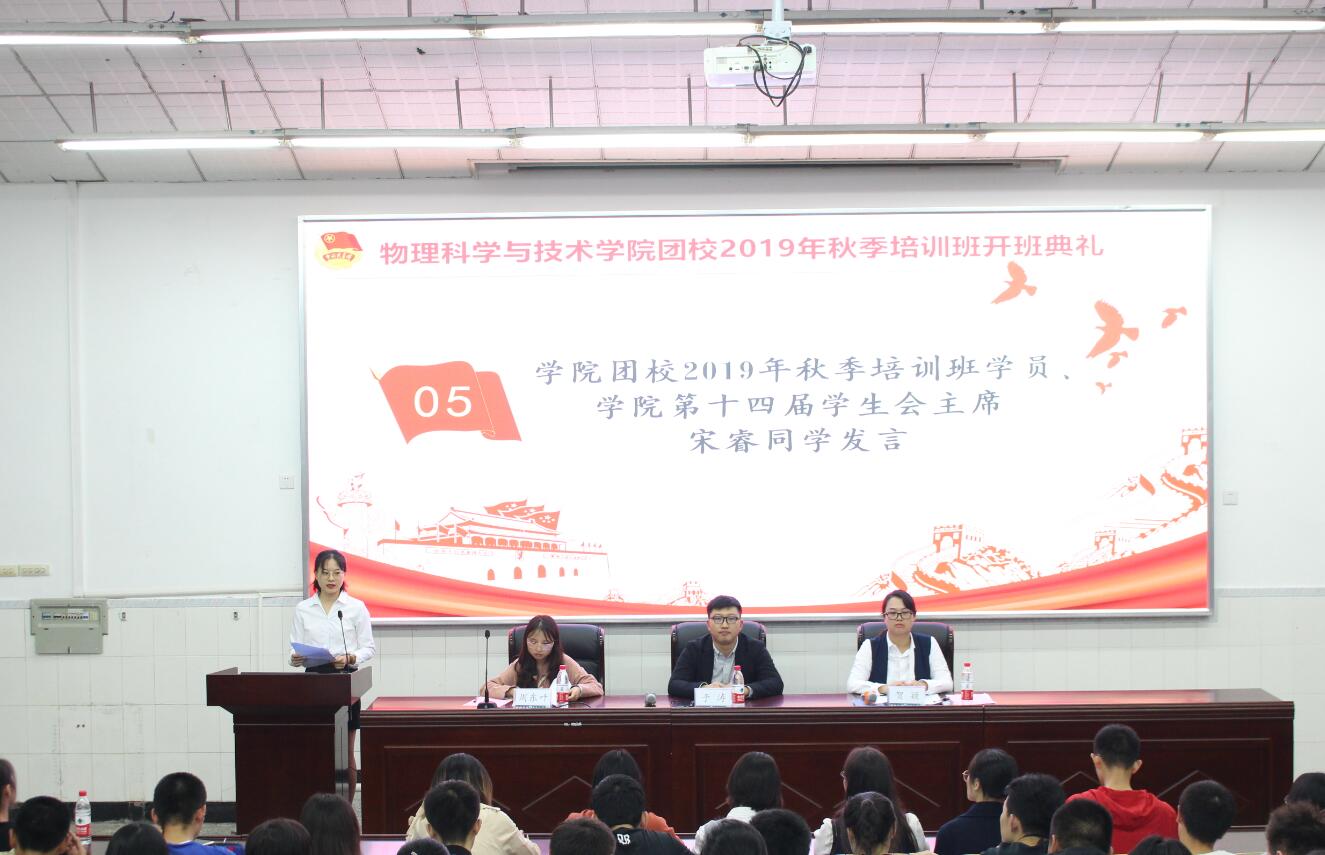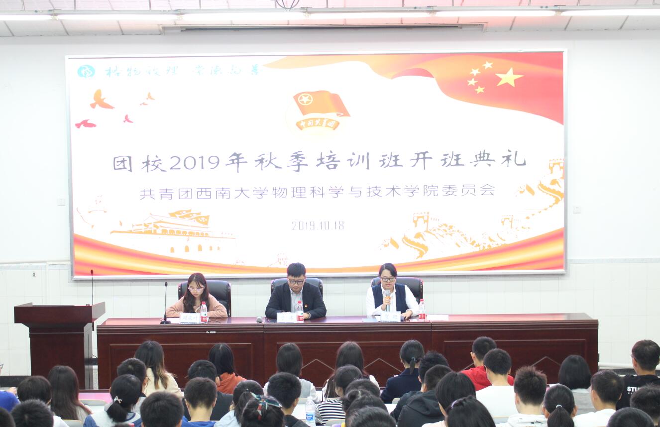10月18日晚七点,团校开班典礼在物理大楼大阶梯教室举行。典礼由海棠书屋 团委书记贺颖主持,校团委副书记于涛应邀出席,2019级辅导员周东叶参加了开班典礼。海棠书屋 团委学生会、科普创作社以及2018级、2019级各个团支部推荐学员共计160名参训学员参会。