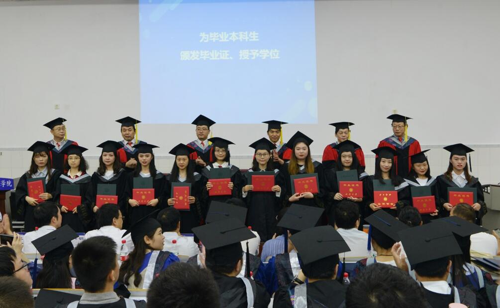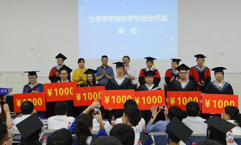 授位结束后,李建光书记宣读了2019届优秀毕业生、优秀毕业论文、升学毕业生等获奖名单。主席台上的领导老师为受表彰的学生代表颁奖。继续深造的同学还获得海棠书屋 人均1千元的奖励。
