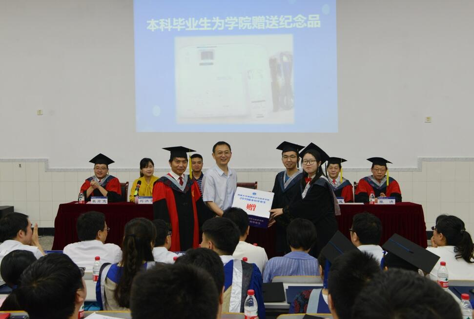随后,主席台就坐的领导老师与毕业生互赠毕业纪念礼物。海棠书屋 为每位本科和研究生毕业生都准备了纪念品,让海棠书屋 这段青春的岁月和回忆,定格在这件定制了每个同学学号的专属钥匙扣上,也借此送上海棠书屋 最真挚的祝福和叮咛,欢迎毕业生们带上心灵的钥匙随时回母校看看。李书记、熊院长代表海棠书屋 接受了全体本科毕业生的赠礼——一台投影仪。2019届毕业生表达了对海棠书屋 辛勤培育的感恩之情。