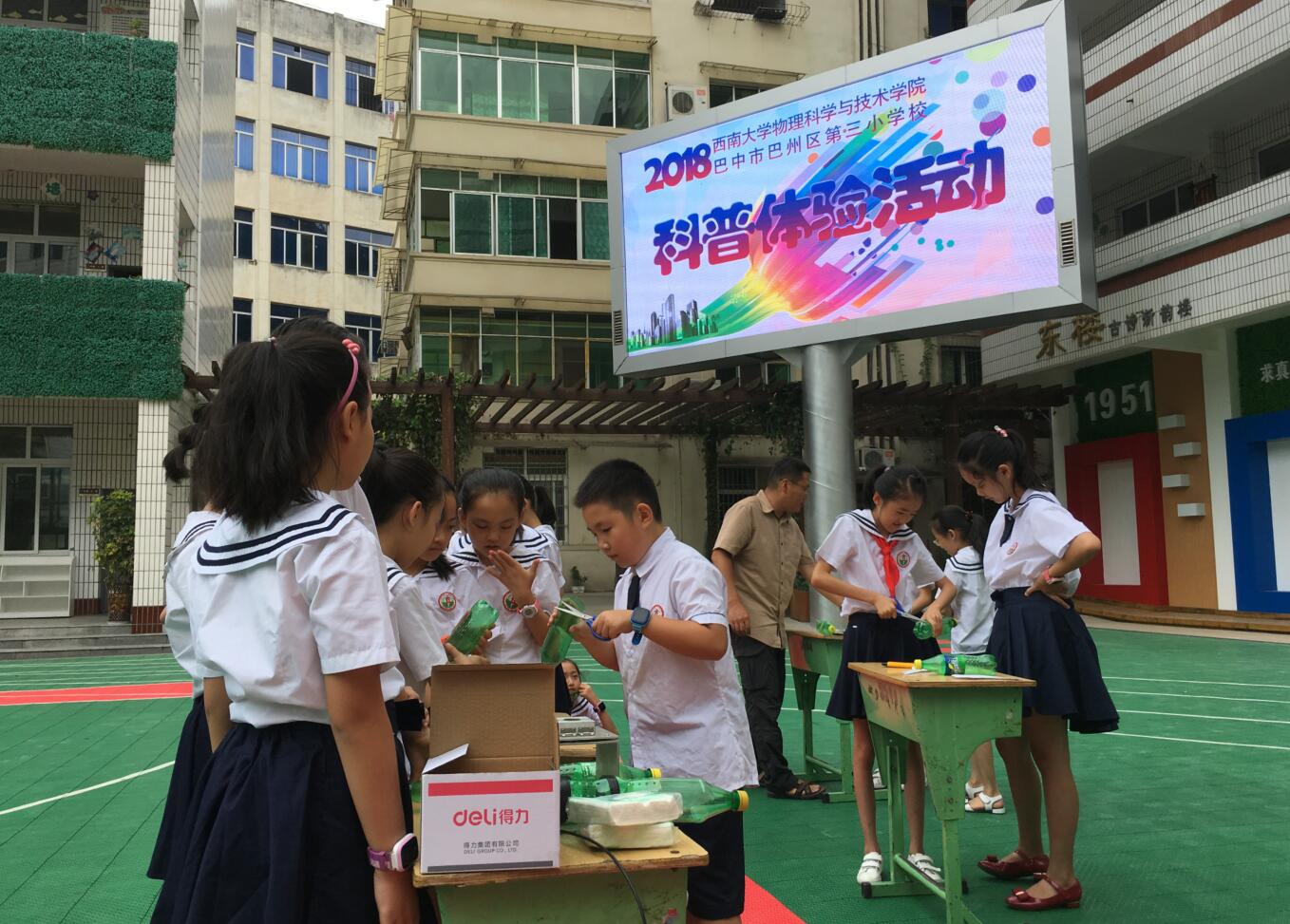 值得一提的是,8月22日开展的科普体验活动中,孩子们围绕着李太华副教授和2017级研究生万春露同学的身旁,现场体验了水火箭、水龙卷等项目,更为形象和直观地接触了科技知识,体验到了科技的魅力,对科学的好奇心和求知欲让老师们也特别感动。巴州区第三小学官方微信对此进行了专门报道。
