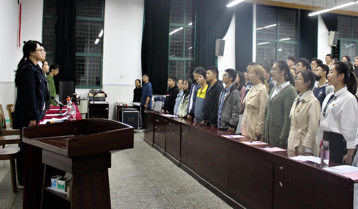 团校副校长、海棠书屋 团委书记贺颖老师宣读了团校培训方案,介绍了团校的指导思想、培养目标、培训内容、培训形式等内容。团校培训班班主任、2018级辅导员卜海东宣读了团校学员管理办法,对团校的课堂纪律、考核方法进行说明。随后,海棠书屋 2017年秋季团校培训班学员代表邢玉陟同学发言,以“我们为什么要参加团校” “上团校我们应当学什么” “我们应当如何进行团校学习”引出自己的思考,倡议大家成为一名合格的共青团员、优秀的学生干部。海棠书屋 第十三届学生会主席朱一凡同学代表本期团校学员发言,作出郑重承诺:“厚植爱国情怀,坚定理想信念;坚持求真务实,树立先锋模范;严守团校纪律,珍惜学习机会”。