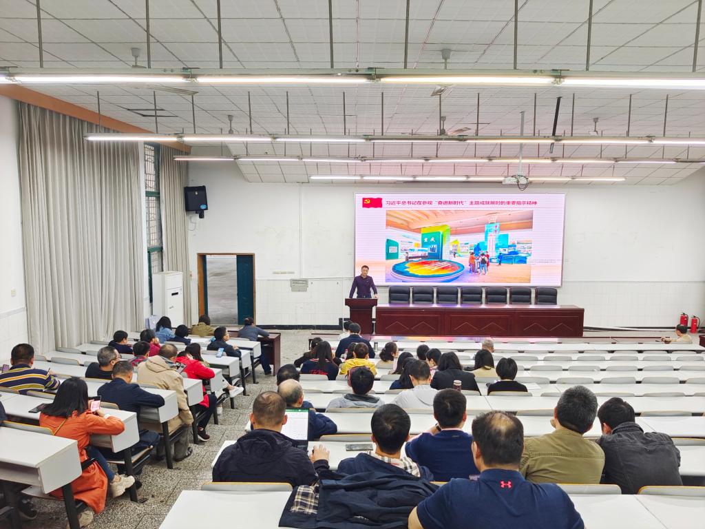 首先,李余廷书记通过视频和PPT内容介绍的形式带领大家学习了习近平总书记在参观“奋进新时代”主题成就展时的重要指示精神。他指出,展览紧扣“奋进新时代”这一主题,以党的十八大以来以习近平同志为核心的党中央治国理政为主线,聚焦新时代10年党和国家事业的伟大成就、伟大变革,既展现事业发展的新局新貌,又揭示变革背后的力量和动能;既展现新时代中国共产党人的政治引领、思想指引,又反映广大人民群众团结一心、干事创业的良好风貌。展览设序厅、中央综合展区、地方展区、展望展区、室外展区和互动展区6个展区,面积超过3万平方米,运用图片、实物、模型等6000多项展览要素,角度丰富、内涵饱满。他强调,党的十八大以来,党中央团结带领全党全国各族人民,攻克了许多长期没有解决的难题,办成了许多事关长远的大事要事,经受住了来自政治、经济、意识形态、自然界等方面的风险挑战考验,党和国家事业取得历史性成就、发生历史性变革,为实现中华民族伟大复兴提供了更为完善的制度保证、更为坚实的物质基础、更为主动的精神力量。李书记强调,接下来海棠书屋