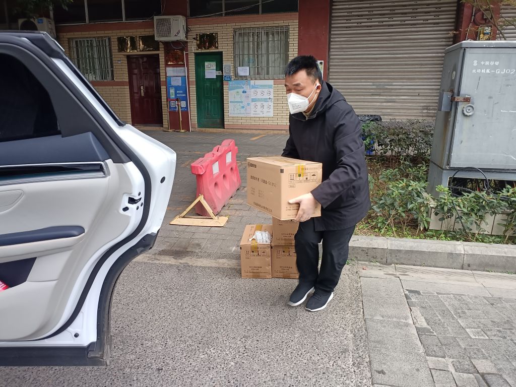 迅速招募到两位教职工党员志愿者驾车到北碚区九院,为离退休老师买齐了所需的10大箱、200余斤重的药品。