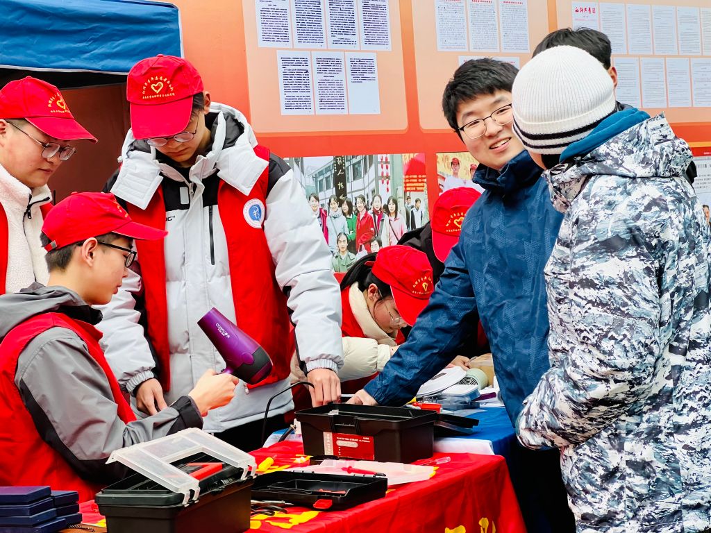 “台灯鼠标吹风机,大学生活三件套,‘红帽子’免费修,志愿服务不打烊,天天都是‘雷锋’样。” 3月1日,在海棠书屋 北区樟树林举行“雷锋精神在西大60年”活动,现场一片热火朝天的景象。该校物理科学与技术海棠书屋 “红帽子”青年志愿者服务队的十余名队员,一边仔细检查同学们送来维修的电器,一边提醒大家在宿舍内要规范使用电器,务必注意用电安全。