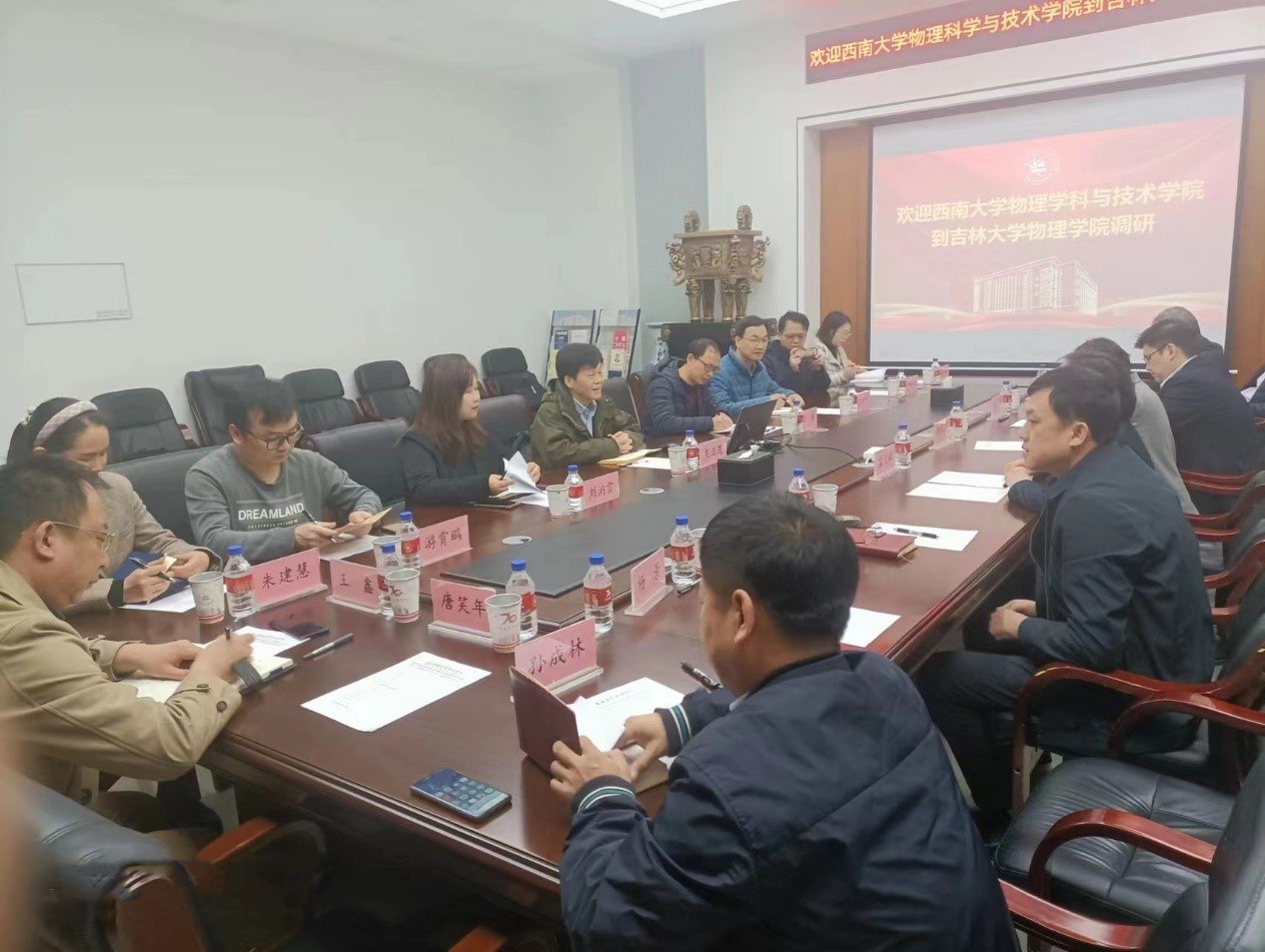 为深入落实党中央关于在全党大兴调查研究工作部署,学习兄弟院校物理学科发展的成功经验,扎实推进海棠书屋 “十四五”各项工作顺利进行,切实推动海棠书屋 事业高质量发展,4月20-22日,海棠书屋 院长吴正茂,副书记刘汭雪,副院长邓涛、赵建伟,教研室主任游霄鹏、贾伟尧、朱建慧,办公室主任刘平萍等一行8人前往吉林大学物理海棠书屋 和东北师范大学物理海棠书屋 学习调研。