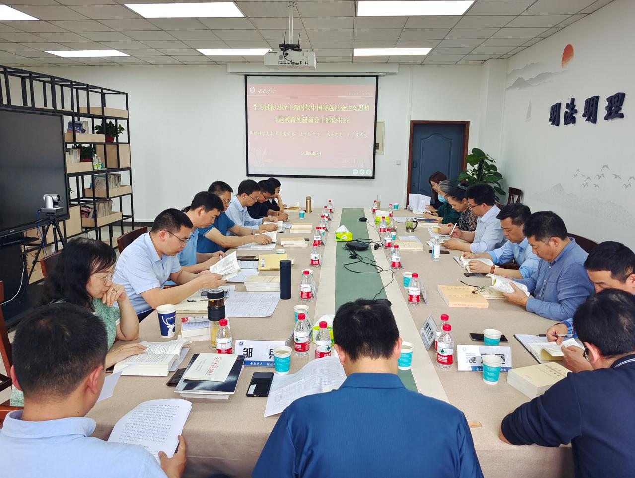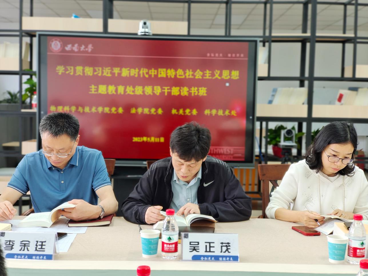 按照学校领导干部学习贯彻习近平新时代中国特色社会主义思想主题教育领导干部读书班统一安排,5月11和12日下午,主题教育读书班第十组在法海棠书屋 409会议开展专题四和专题五集中学习。物理科学与技术海棠书屋 党委、法海棠书屋 党委、机关党委和科学技术处领导班子全体成员参加,学习由海棠书屋 党委书记李余廷主持。