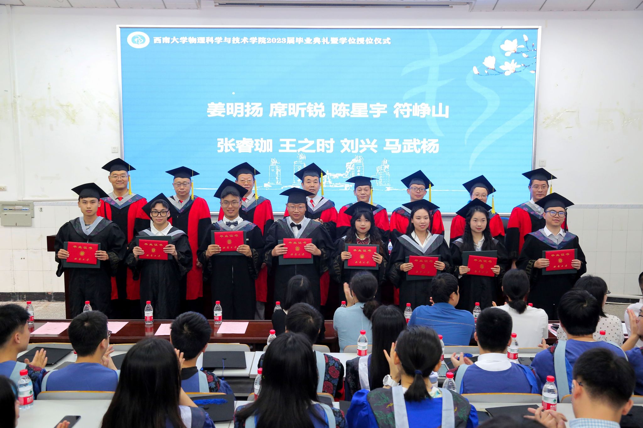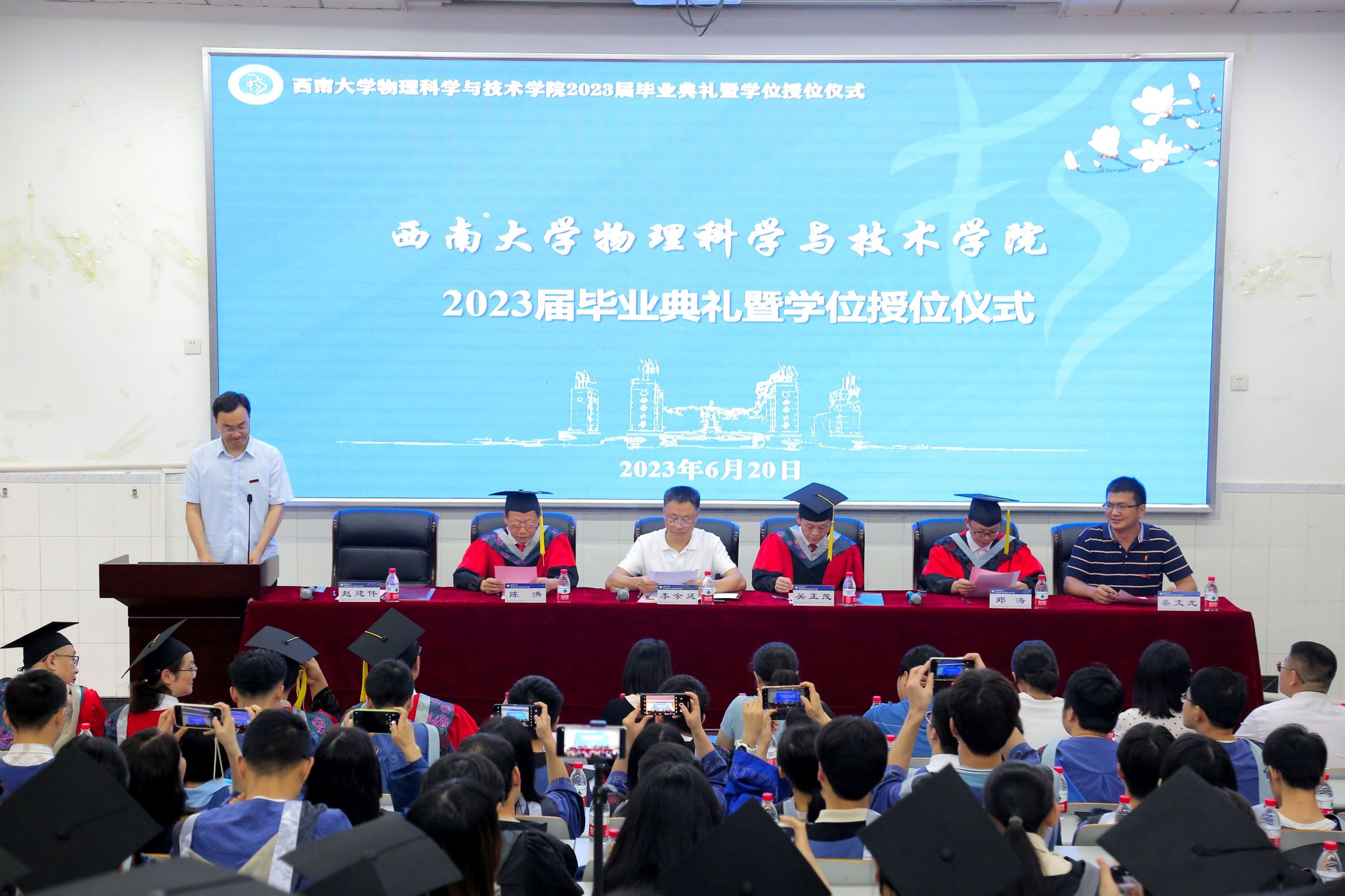 6月20日上午,海棠书屋 2023届学生毕业典礼暨授位仪式在物理大楼大阶梯教室隆重举行。院党委书记李余廷,校学位评定委员会委员、院长吴正茂,院学术委员会主任陈洪,校学术委员会委员、副院长邓涛,副院长桑文龙出席典礼。海棠书屋 学术委员会全体成员、工会主席、办公室主任、教务办主任、教师代表、毕业年级辅导员和班主任、2023届研究生本科生以及家长代表共计200余人参加了典礼。典礼仪式由副院长赵建伟主持。