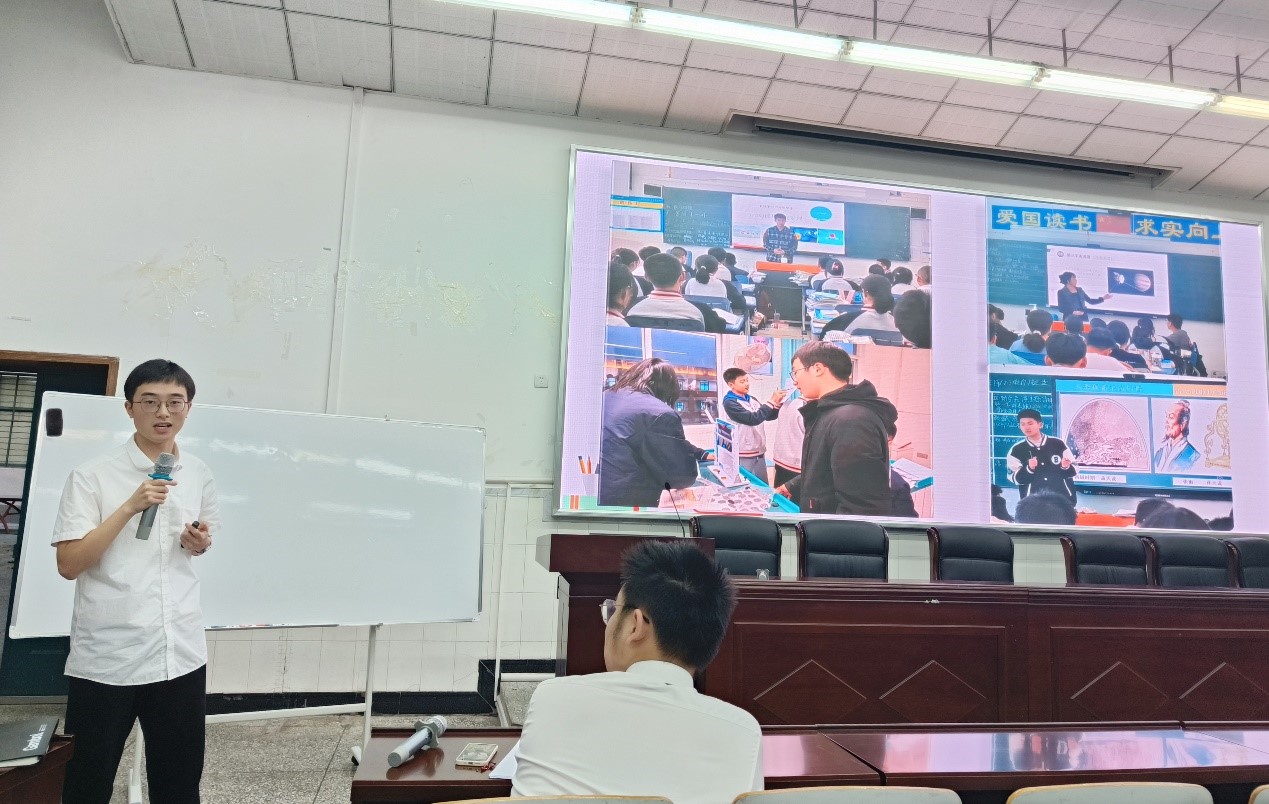来自师范三班,在四川省绵阳南山中学实验学校实习的朱成林同学用自己的各种实习经历和实习体悟,提醒同学们要保持教育的初心和原则,趁着年轻敢于尝试,引起了大家的共鸣。