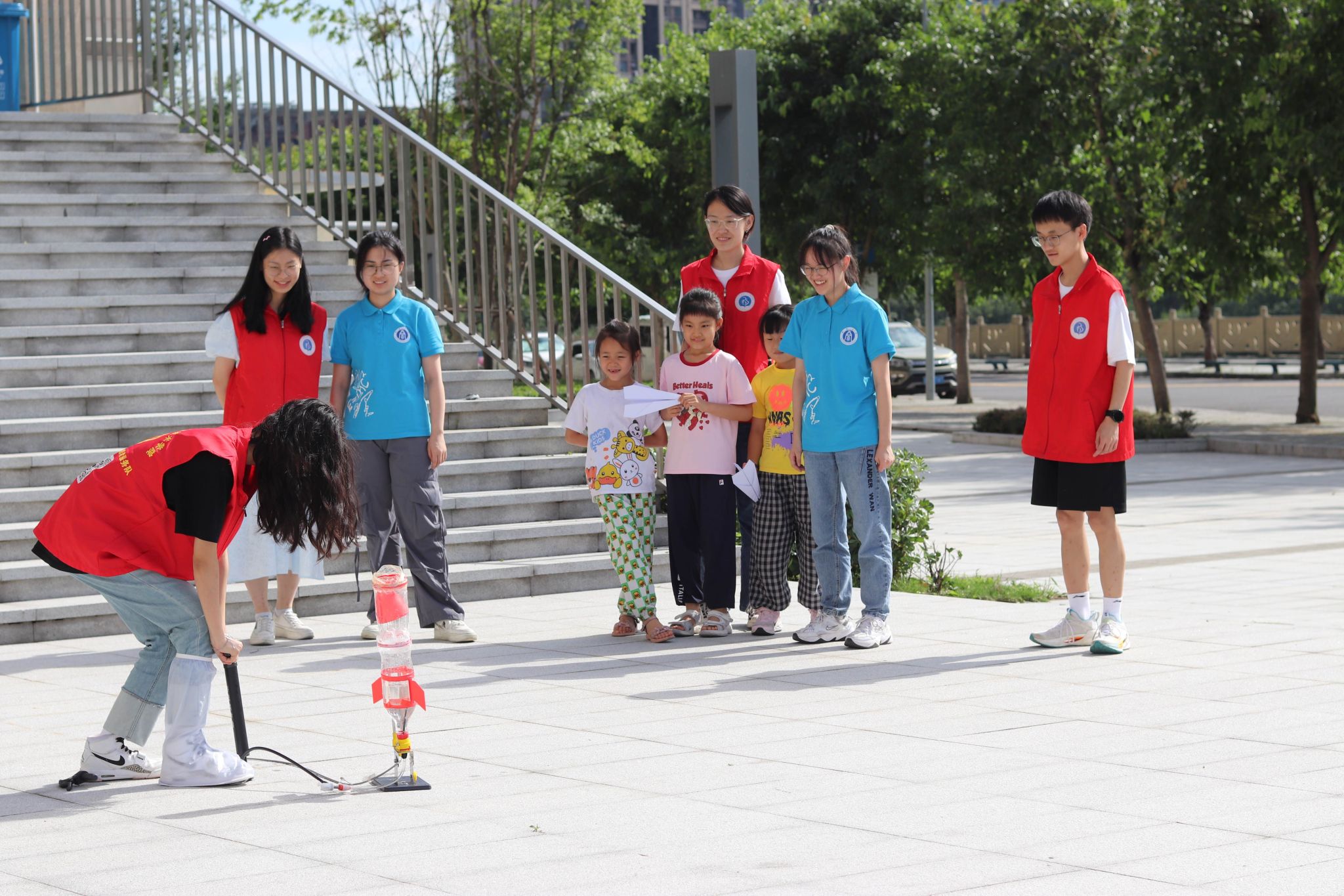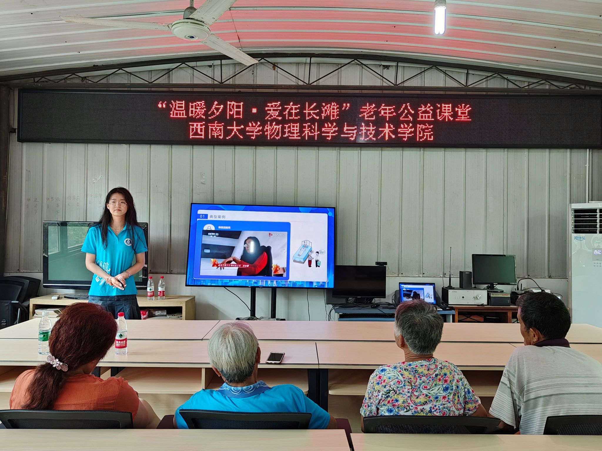 “3、2、1,升空!”7月4日上午在长滩村村委会的院坝里,小朋友们在海棠书屋 科普空间站大哥哥、大姐姐们的指导下装水、加压、发射。竭尽全力地打足气后,水火箭“嘭”的一声升空的那一刹那,小朋友们都欢呼雀跃。7月4日下午在燎原社区会议室里,“怎样折纸飞机才能飞得更远呢?”“下雨天比雷声更早出现的是什么呢?”实践团的小老师们继续为小朋友们带来生动有趣的暑期嘉年华活动。与此同时,针对长滩村居住分散、留守老人多的特点,实践团的成员们积极参与老年健康教育服务,精心准备了两期“温暖夕阳 爱在长滩”老年公益课堂。围绕健康养生、自救自护、防范电信诈骗等主题,以图文并茂、寓教于乐的形式进行了常见疾病的自我管理教育和医保相关政策宣讲。