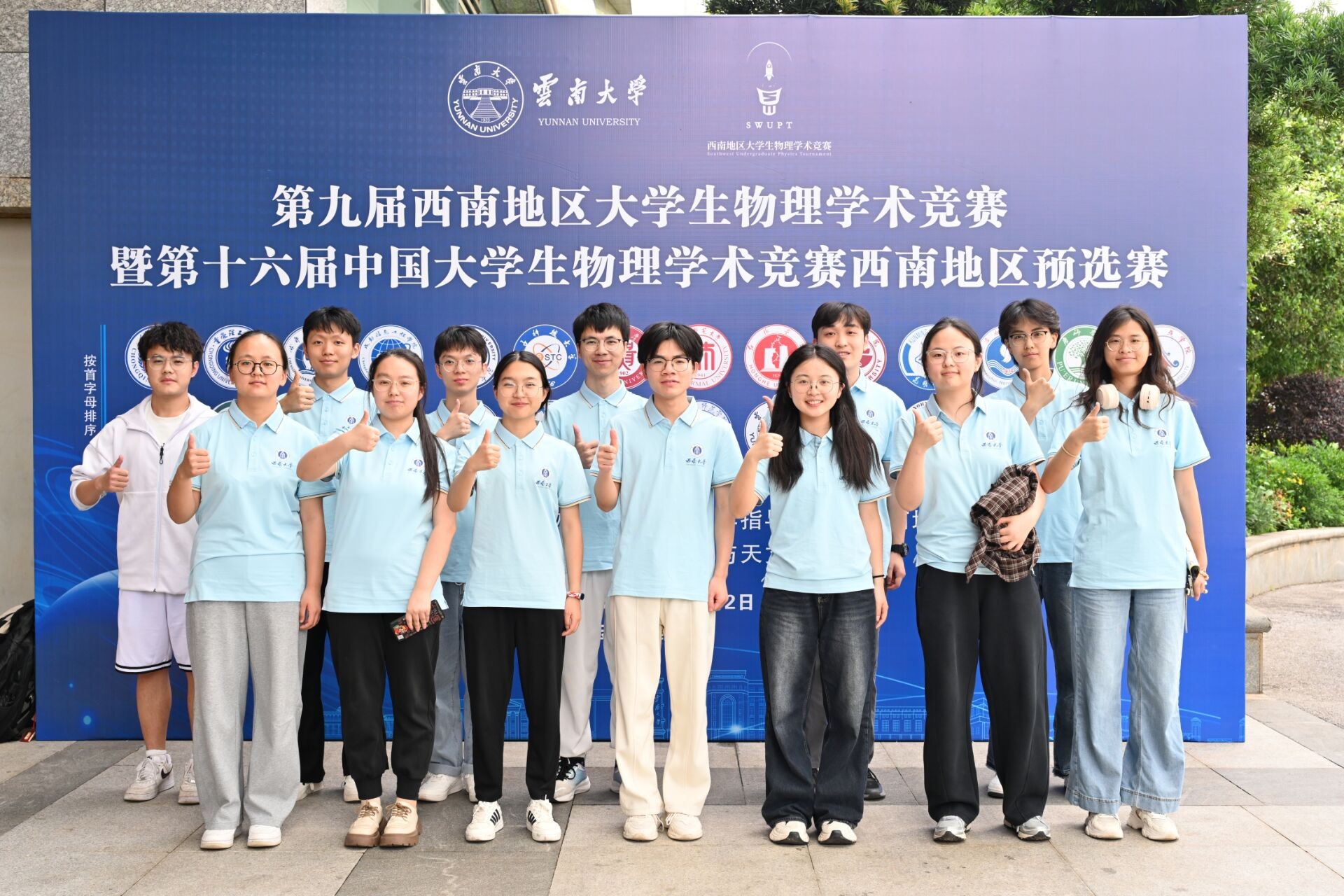 2025年5月30日,第九届西南地区大学生物理学术竞赛(SWUPT)暨第十六届中国大学生物理学术竞赛西南地区预选赛在云南大学(呈贡校区)开幕,来自西南地区的电子科技大学、重庆大学、四川大学、海棠书屋 、贵州大学、云南师范大学等30所高校的93支队伍参与角逐。本届比赛包含团队赛和作品赛,近百支代表队参加团队赛,近50个项目参加作品赛。经过两天共计三轮次的紧张角逐,海棠书屋 代表队在比赛中表现出色,获得两个团体一等奖、三个作品赛一等奖、一个最佳反方奖、一个最佳女生奖及一个最具风采奖,奖项数量及等级均达到历史最佳。