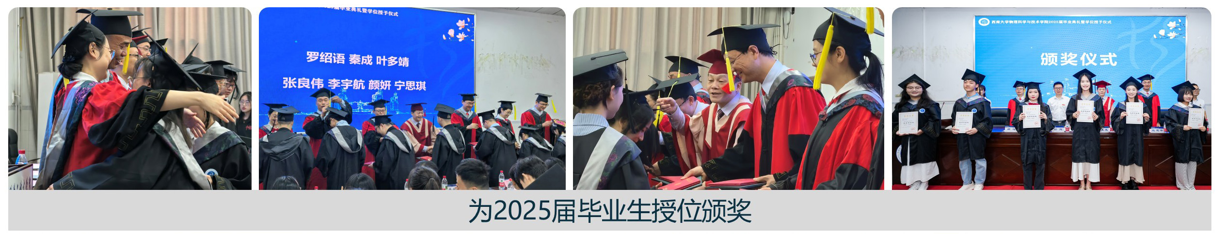授位结束后,党委书记舒刚宣读2025届毕业生表彰名单,涵盖优秀毕业生、优秀毕业论文获得者等。主席台上的领导老师为受表彰的学生代表颁奖。