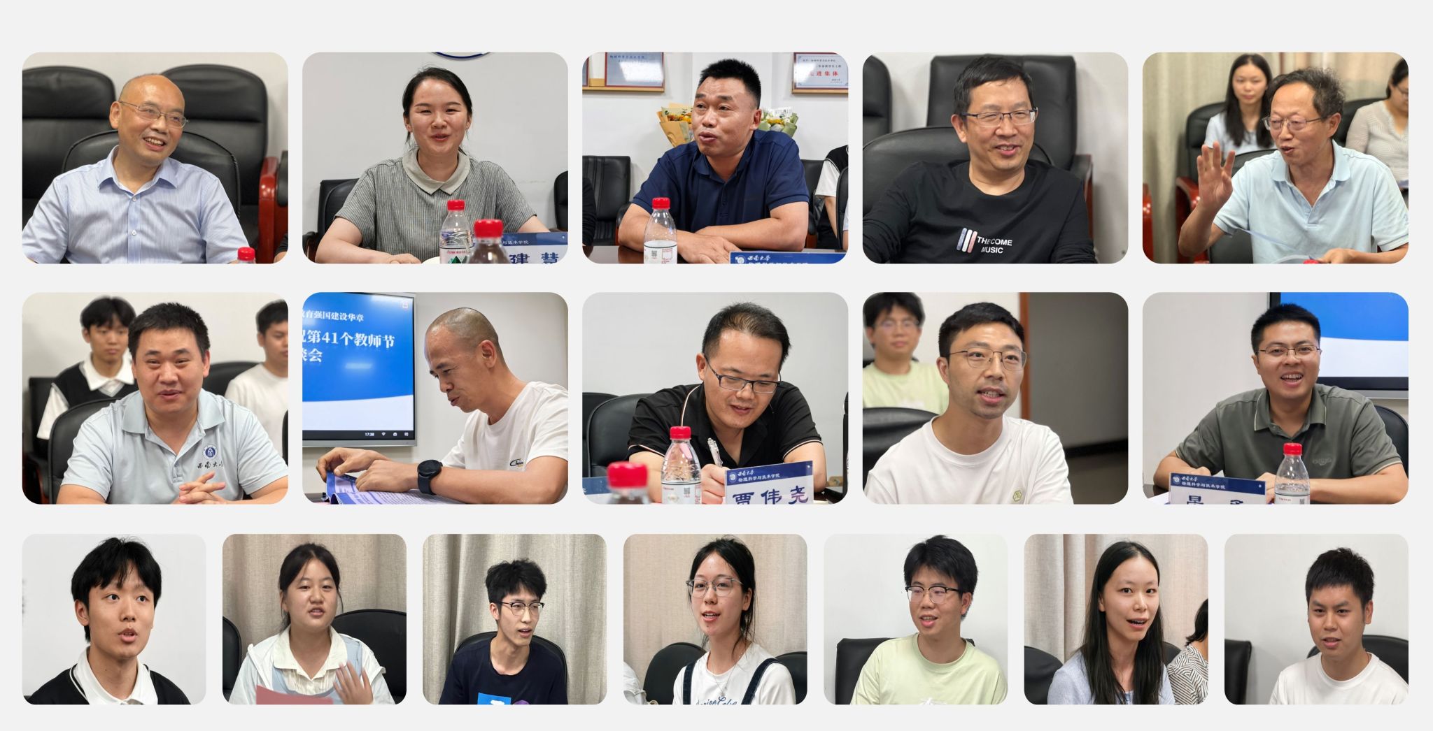 9月10日下午,海棠书屋 在物理大楼东附楼二楼会议室召开庆祝第41个教师节师生代表座谈会。本次座谈会以“以教育家精神铸魂强师,谱写教育强国建设华章”为主题,海棠书屋 党政领导、光荣从教30年教师代表、各教研室教师代表及学生代表近20人参会,共话师道传承与育人使命。座谈会由海棠书屋 党委书记舒刚主持。