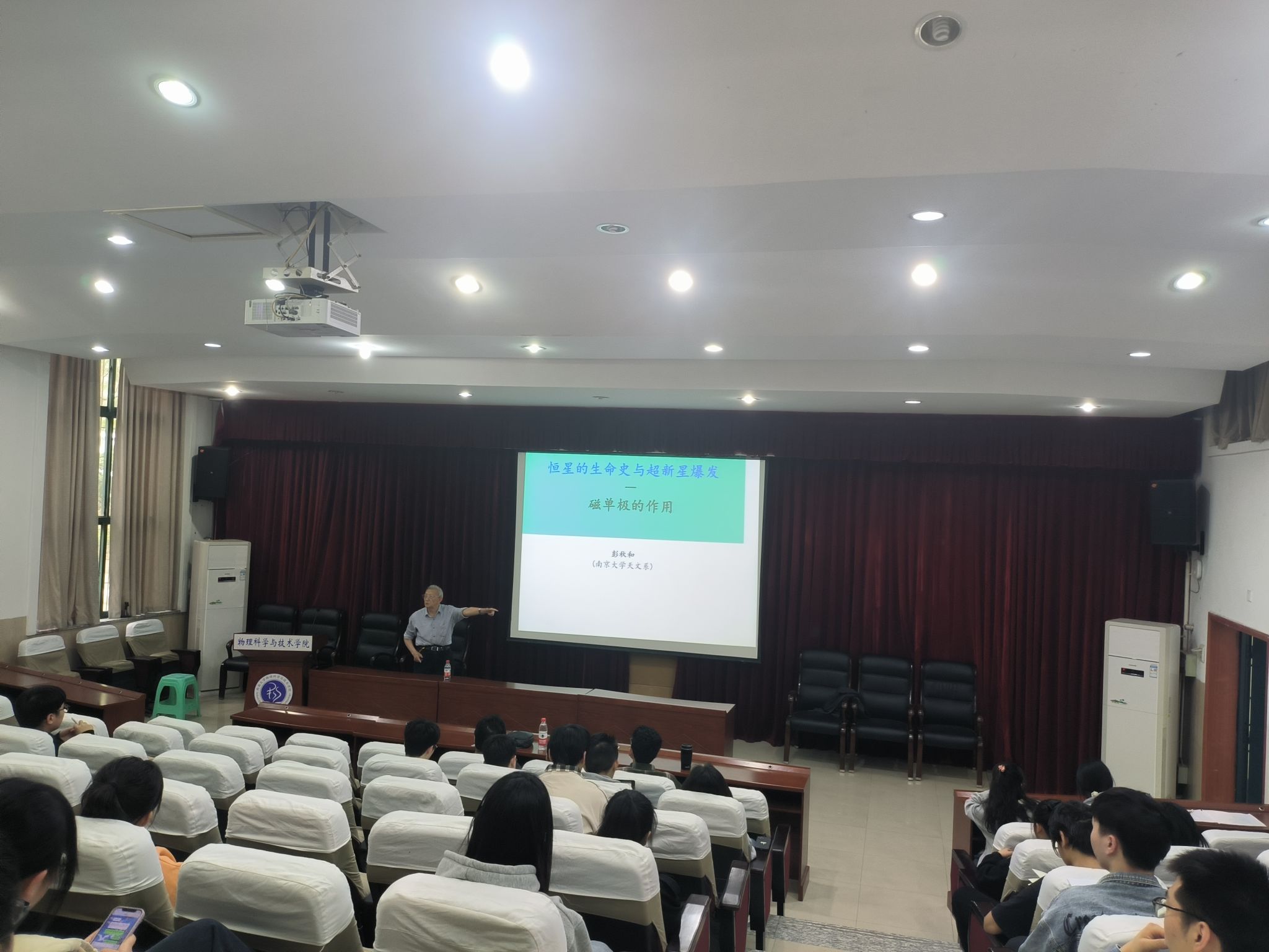 2023年4月26日下午,南京大学彭秋和教授应邀来海棠书屋 做题为“恒星生命史和超新星爆发——磁单极的作用”的学术报告,吸引了众多师生前来聆听。