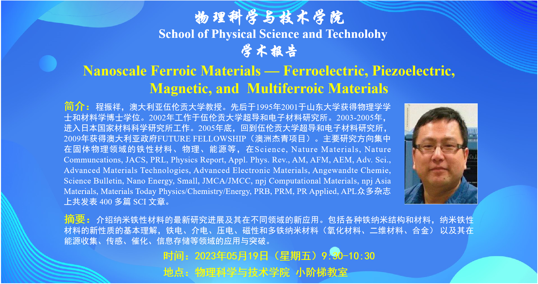 【学术报告】Nanoscale Ferroic Materials -- Ferroelectric, Piezoelectric, Magnetic, and Multiferroic Materials
