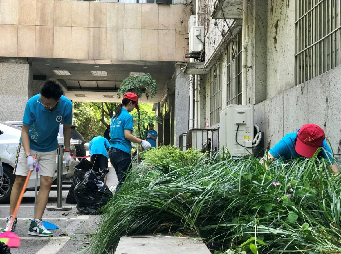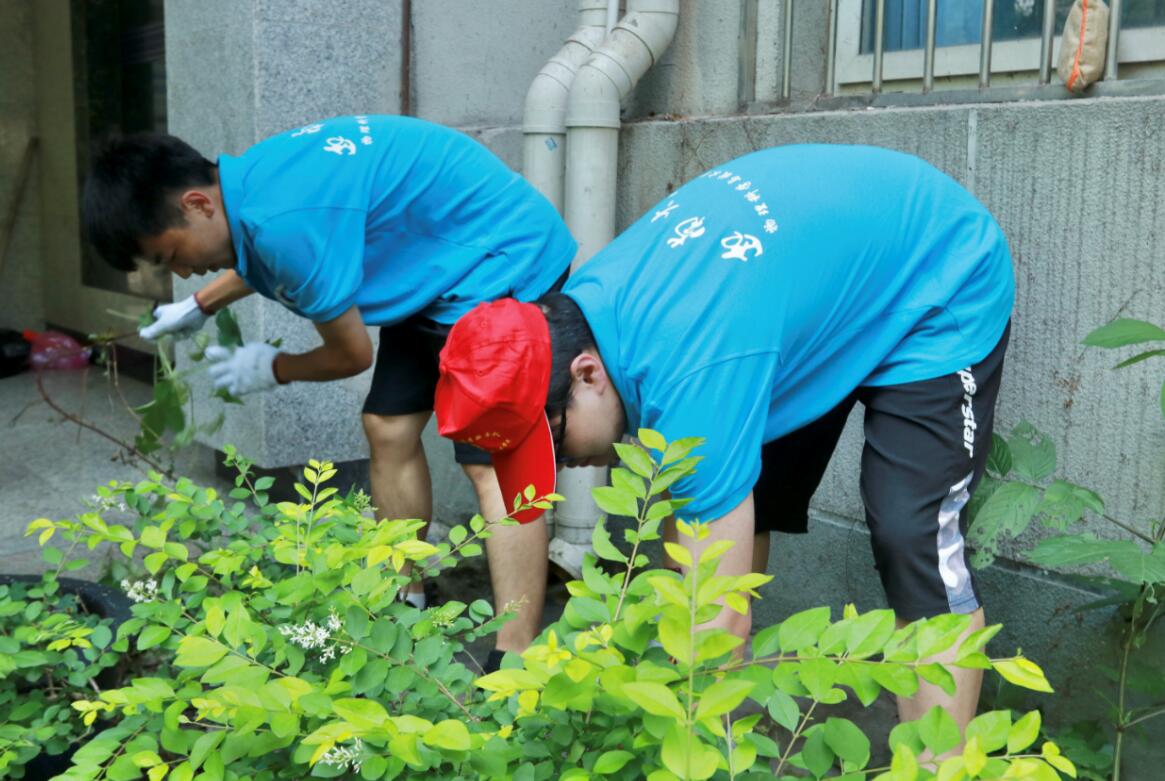 “口渴了就喝水休息,注意不要中暑了”“小心倒刺,仔细辨认杂草”,在领导老师们的叮嘱声中,学生们戴着红帽子,戴着白手套,干劲十足地来到了划定区域,借助耙子、剪刀、拔草手套等各种专业除草工具,积极投入了除草工作中。大家分工合作,相互配合——有人拔除杂草,有人清理院楼附近的杂物,有人及时把清除出来的杂草杂物统一搬运,做好善后工作。