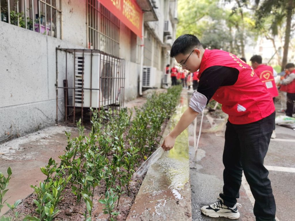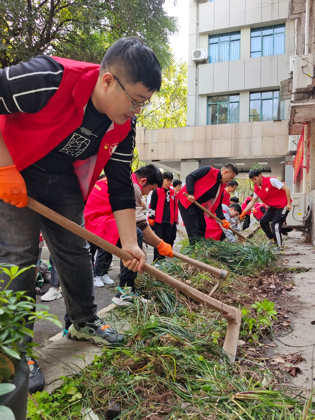 劳动实践环节,党员同志们身穿红马甲,戴着橘色皮手套,干劲十足地来到了工作区域,借助锄头、铲子、各种专业工具,积极投入了拔草、翻土和栽花工作中。大家分工合作,相互配合,在劳动中乐此不疲。挥锹除杂草、取集新土壤、种植小花苗、播撒花种子、取水助灌溉、转运垃圾,到处都是忙碌的身影,到处又都井然有序、配合默契。劳动实践现场呈现出一派热火朝天的景象,此时,正在刨土种植花苗的研究生第二党支部党员谢雨莎同志表示:这次活动真是太有意义了,在刨土的过程中,我真的不仅体验到劳动的艰辛,也感受到了劳动带来环境改变的成就感。 “我们会利用学习之余时间,好好呵护和精心照料我们亲手播种的花苗,待到花开之日,我还要来这里拍照打卡。” 在一旁浇水灌溉的研究生第一党支部党员张鑫同志说到。