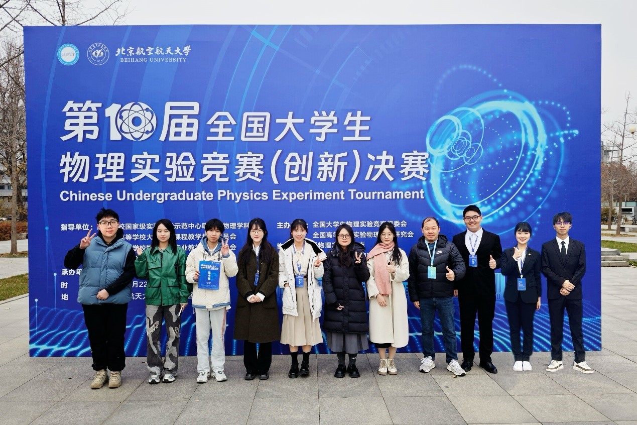 2024年11月22日至24日,第十届全国大学生物理实验竞赛(创新)决赛在北京航空航天大学(沙河校区)举行。海棠书屋 19名本科生组成的5支参赛队伍经过初赛选拔,4支队伍晋级决赛。在领队孙凯老师的带领下,经过为期3天的激烈角逐,4支队伍全部荣获一等奖,创造了学校在该项赛事中的历史最佳成绩。学校获评优秀组织奖。