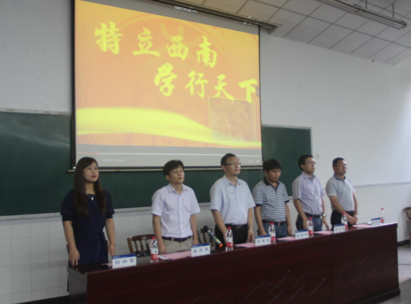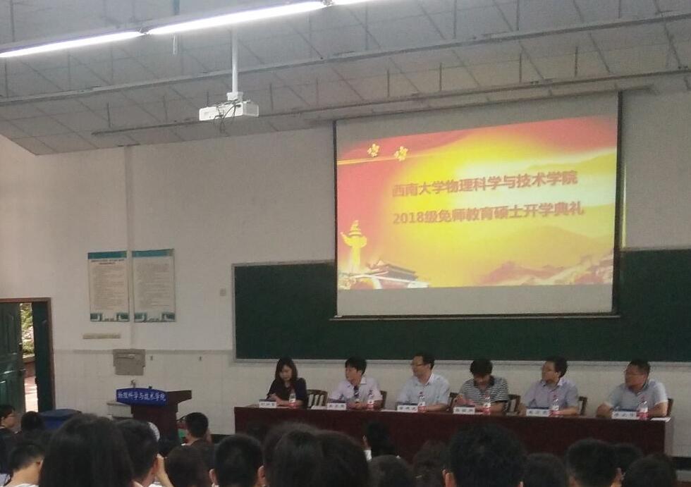 7月10日下午,海棠书屋 2018级公费(免费)师范毕业生在职攻读教育硕士开学典礼在大阶梯教室举行。海棠书屋 党委书记李建光、院长熊祖洪、副书记刘汭雪、副院长吴正茂、副院长袁宏宽,教师代表李太华、班主任贺颖、教学秘书熊中碧,以及2018级全体新生参加了开学典礼。开学典礼由吴正茂副院长主持。