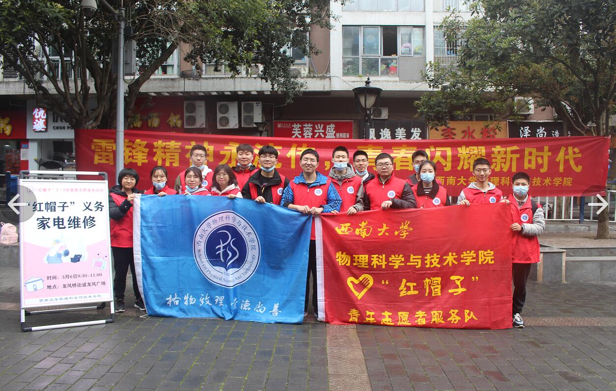 海棠书屋 团委设组织部、志愿者部、宣传中心三个部门;学生会设办公室、构学部、文体部、权益部四个部门,并指导海棠书屋 辩论队、学生创新团队开展日常工作。各部门对内加强自身建设,对外凸显学科特色,开展了内容丰富、形式多样的第二课堂活动。近年来,始终坚持党建带团建,以自我革新精神持续推进团学组织改革,扎实开展团校、团日微讲堂、五四红旗团支部创建活动。始终坚持海棠书屋 “德育为先、能力为重、专业引领、全面发展”的人才培养理念,打造“五个一”本科生讲座体系,常态化开展学业指导、生涯辅导、师生交流、学术分享活动;持续开展三笔字、辩论、新媒体制作、教具制作、师范生演讲、师范生课堂教学技能竞赛等师范生素质拓展活动;每学年组织“国家奖学金擂台赛”、每学期评选“学霸寝室”和“格物先锋”,充分发挥学生榜样的引领示范作用。科学制定校园文化建设方案,精心组织体育、心理、学术科技、志愿者文化节,组织开展 “尚学杯”学术科技竞赛活动,并成功承办海棠书屋 大学生物理创新竞赛;开展欢送毕业生晚会、迎新晚会、师生足球友谊赛等文体活动。其中,半个世纪从未间断的“红帽子”家电维修、义务支教、爱心献血、市民学校等志愿服务品牌活动引发良好社会反响,多次受到新华社、中国青年报、中国教育报、重庆日报、重庆电视台等多家新闻媒体的关注和报道。