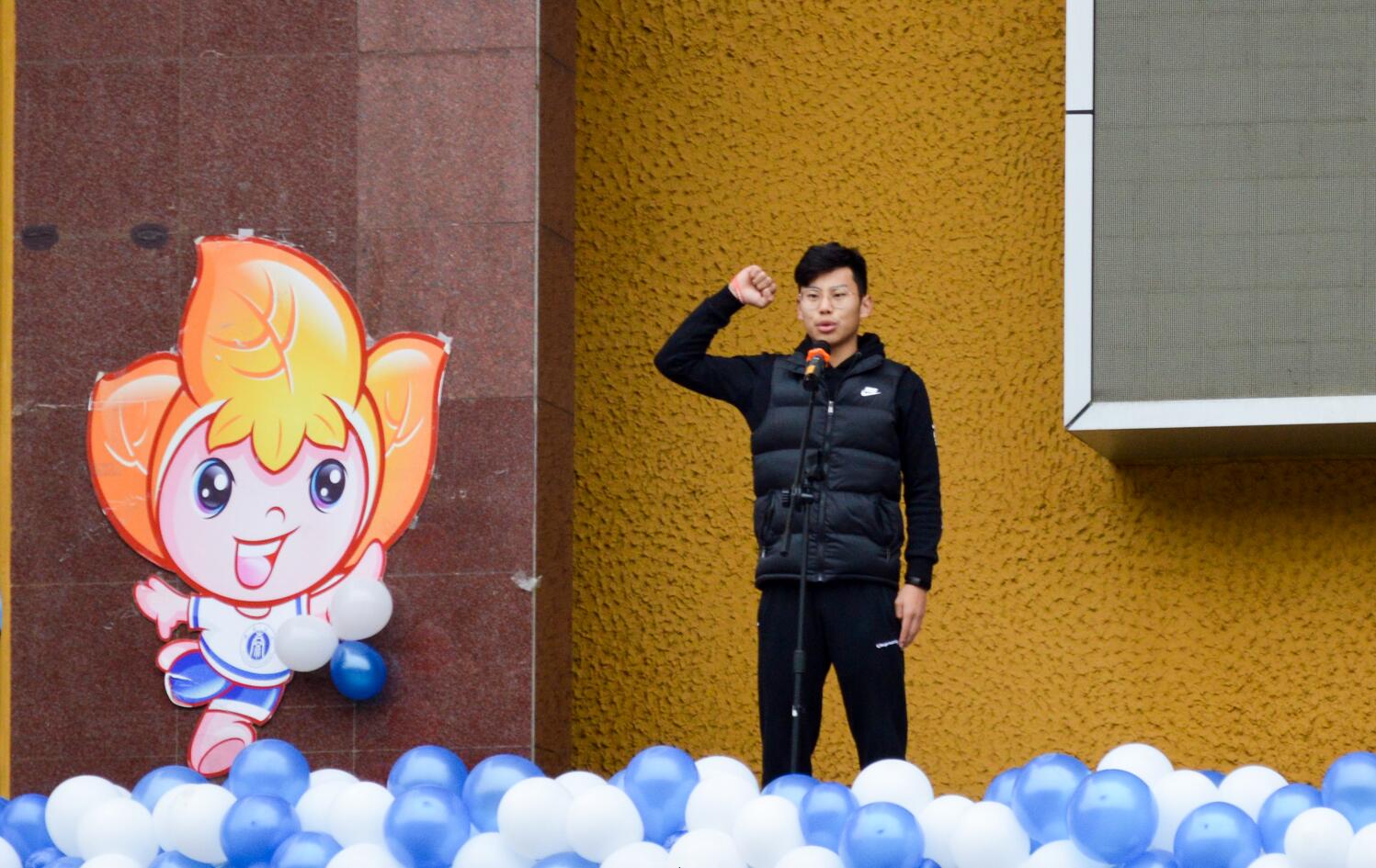 党委书记李建光宣布运动会正式开幕。青春跳动的开场舞表演《物韵年华》让初冬的运动场顿时热情洋溢。