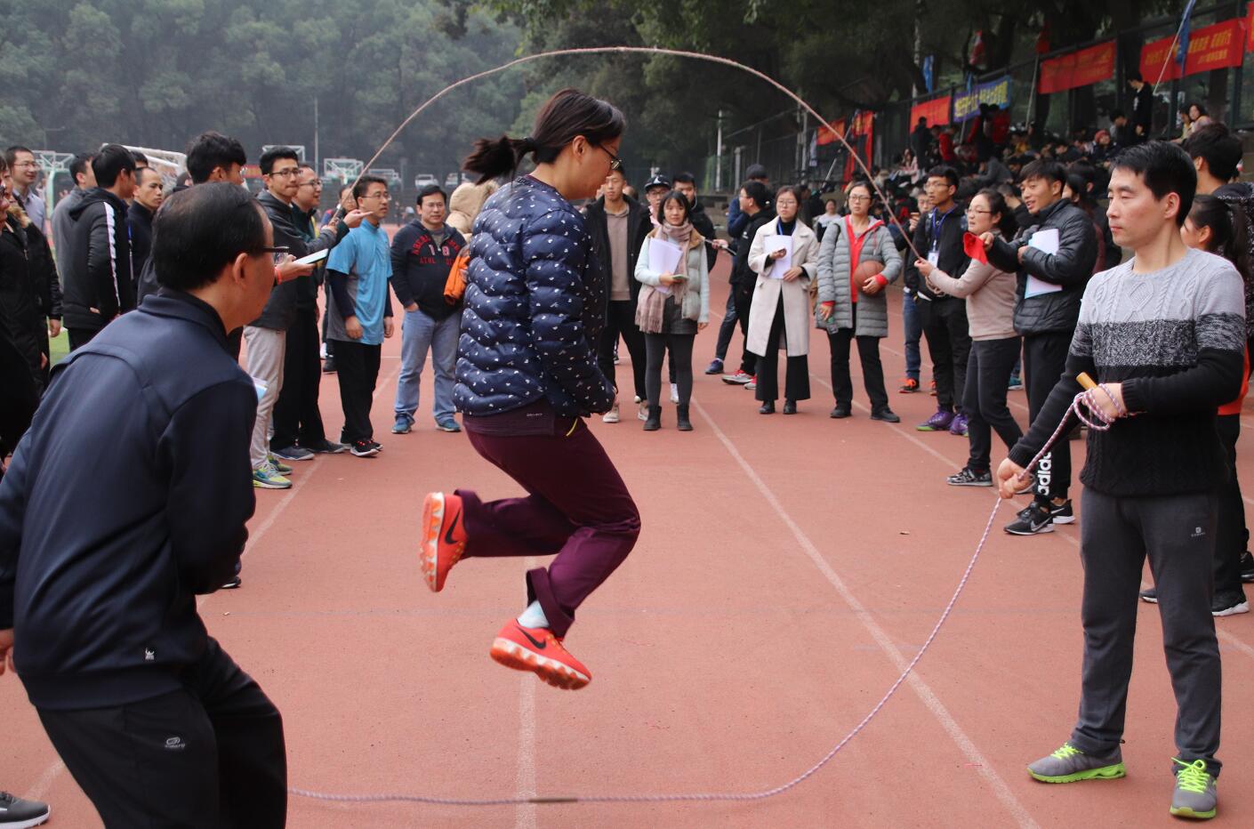 以“炫青春 乐运动”为主题在学校第一运动场举办了第十一届田径运动会。全体在校在职教职工、本科生和研究生分为教工组和学生组,组成5支教师代表队、16支学生代表队共计686名体育健儿,以及93名裁判员参与了29个项目的比赛。