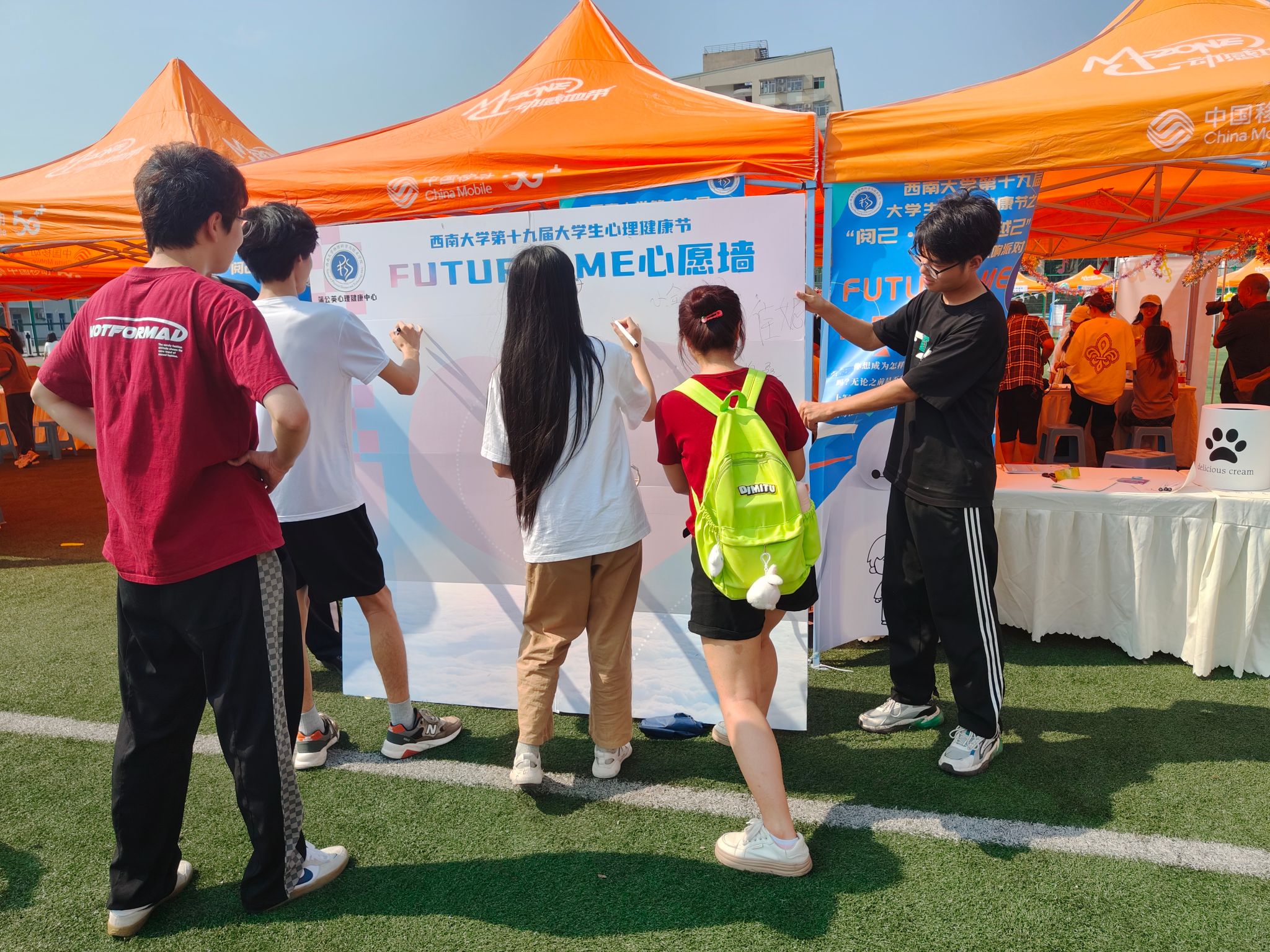 5月25日,学校在第四运动场举办“阅己·悦己·越己”超时空派对活动。海棠书屋 配合学校安排,结合海棠书屋 特色,精心策划并组织了“游园集章” “Future Me 心愿板” “情绪交换商店” “电波传递”等多个心理活动,活动集互动性、趣味性和体验性于一体,校园里欢声笑语不断。本次活动触动人心,反响热烈,参与同学给予了高度评价。2023级物理学一班董炜同学表示:“在情绪交换商店中,我帮助别人面对负面情绪,解决现实问题。关注自己和他人的心灵成长,传递同伴间的关爱力量,这让我非常幸福。”2022级师范六班陆欣怡同学表示:“这次心理健康节活动让我意识到,认识自己是爱自己、爱他人的第一步。”