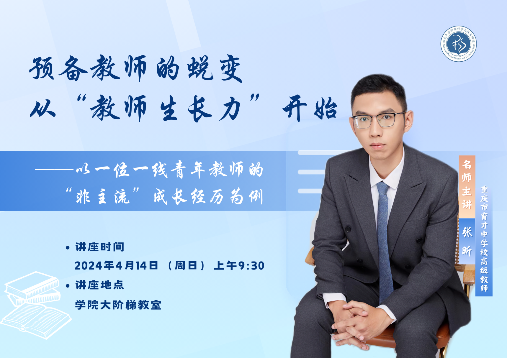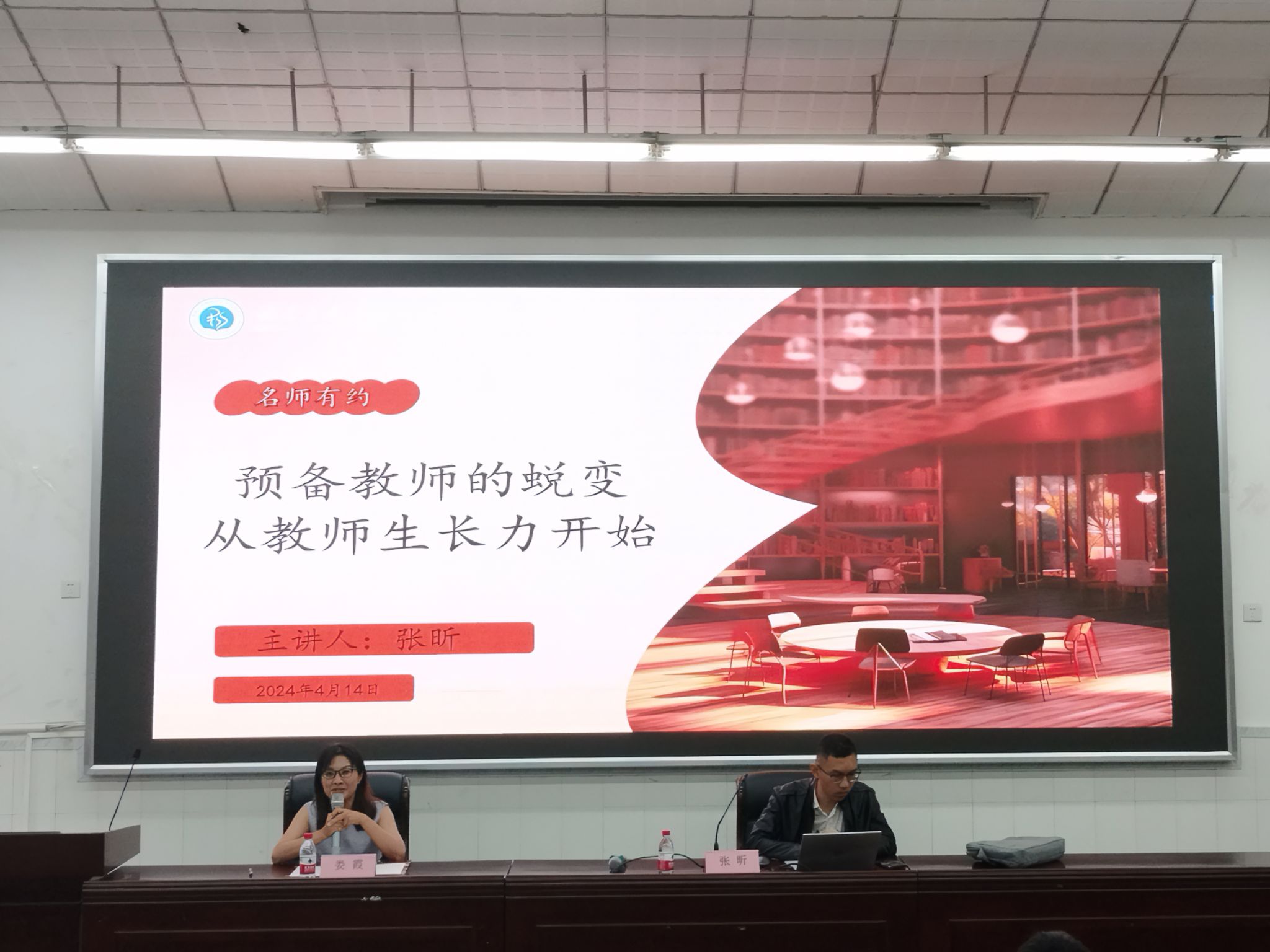 为培育师范生教育情怀,提升师范生综合素养和实践能力,4月14日上午,由物理科学与技术海棠书屋 承办的第一期“名师有约”系列讲座在海棠书屋 大阶梯教室成功举行。海棠书屋 邀请了重庆市九龙坡区学科带头人、重庆市育才中学校高级教师张昕,为同学们带来了以“预备教师的蜕变:从‘教师生长力’开始”为题的专题讲座。讲座由海棠书屋 党委副书记娄霞主持,200余名公费师范生聆听了该讲座。